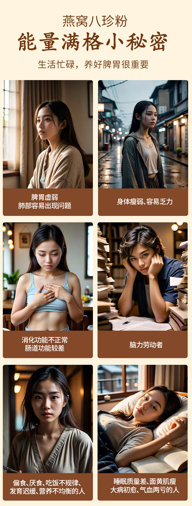 【配料表】怀山药、莲子、芡实、茯苓、燕麦、薏苡仁、印尼燕窝≥1200mg、猴头菇、陈皮