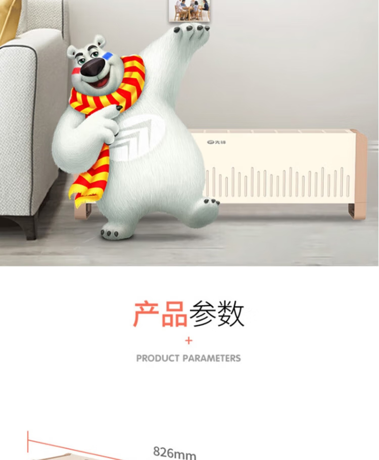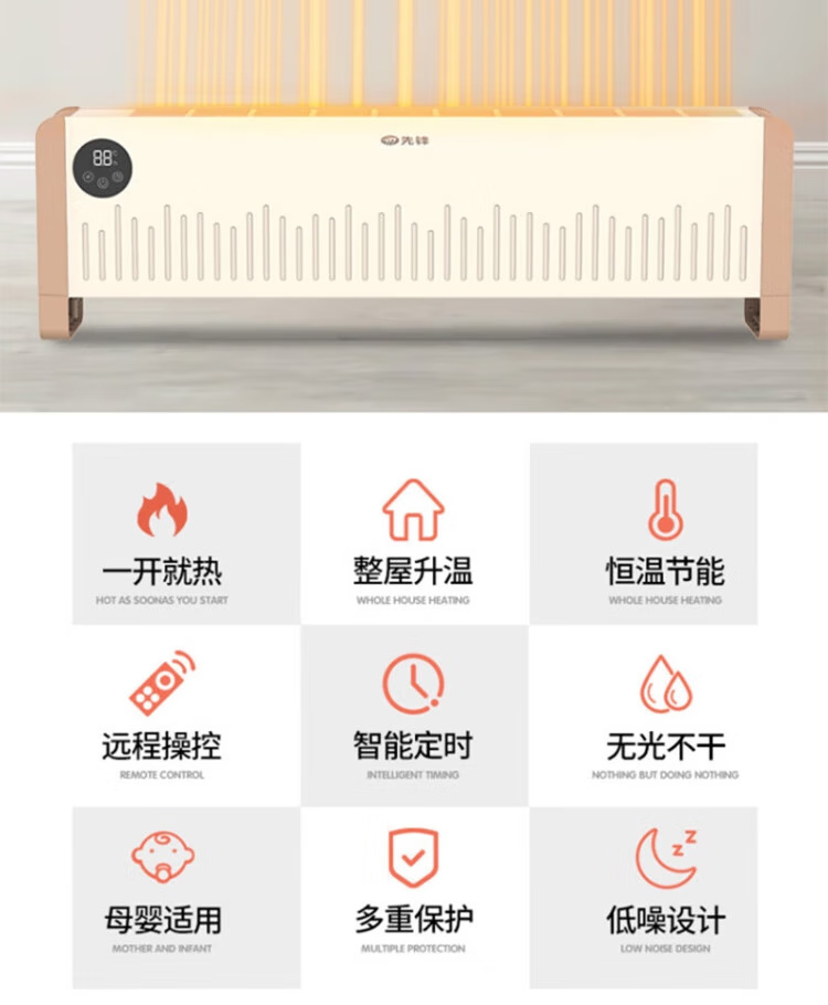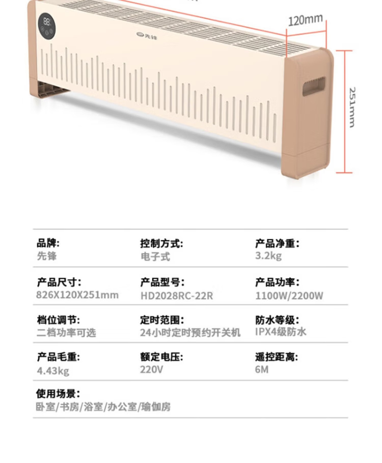 先锋 取暖器踢脚线电暖器移动地暖家用居浴两用电暖气烤火炉加热器暖风机 HD2028RC-22R 遥控