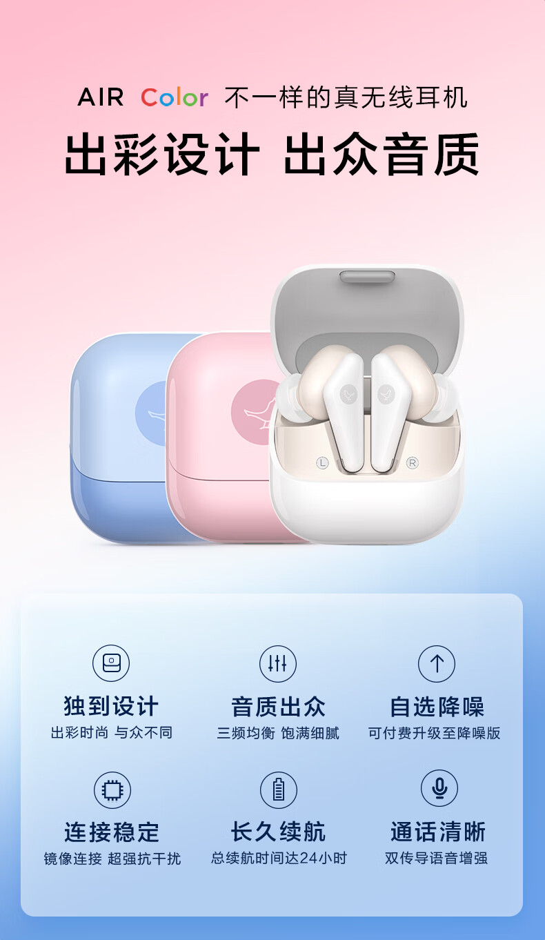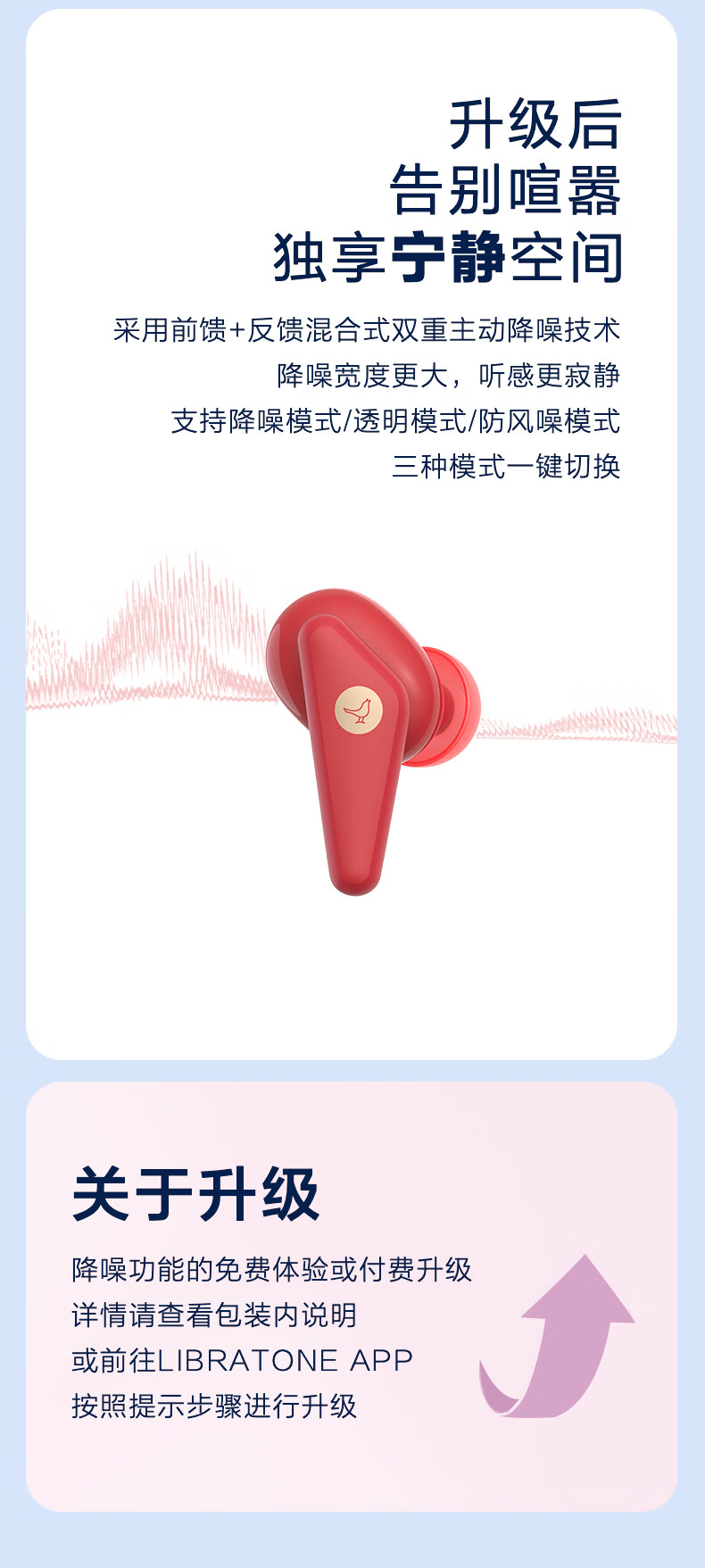 Libratone 小鸟耳机 真无线入耳式运动蓝牙耳机适用苹果华为安卓 粉色
