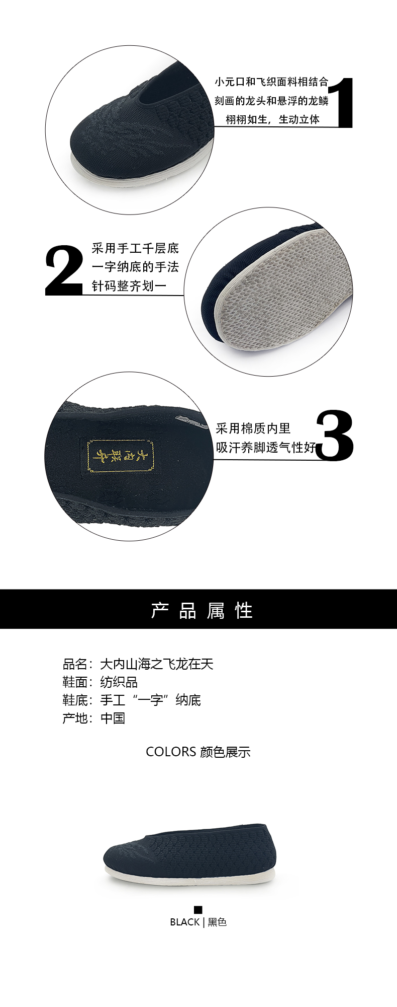 内联升男鞋手工单鞋千层底大内山海之飞龙在天小元口布鞋SH8530