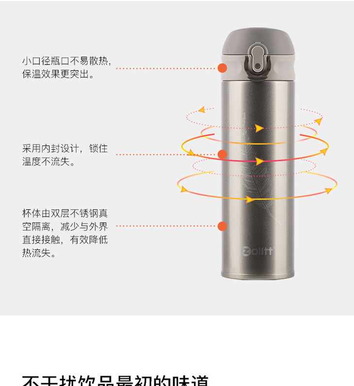 zolitt保温杯304不锈钢便携男女简约成人防摔随手水杯大容量