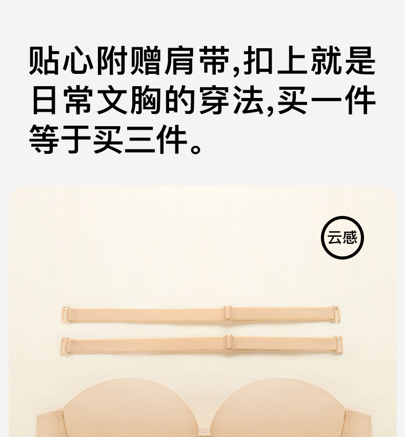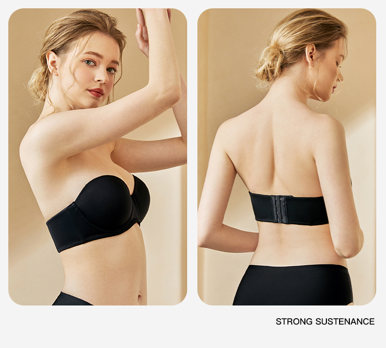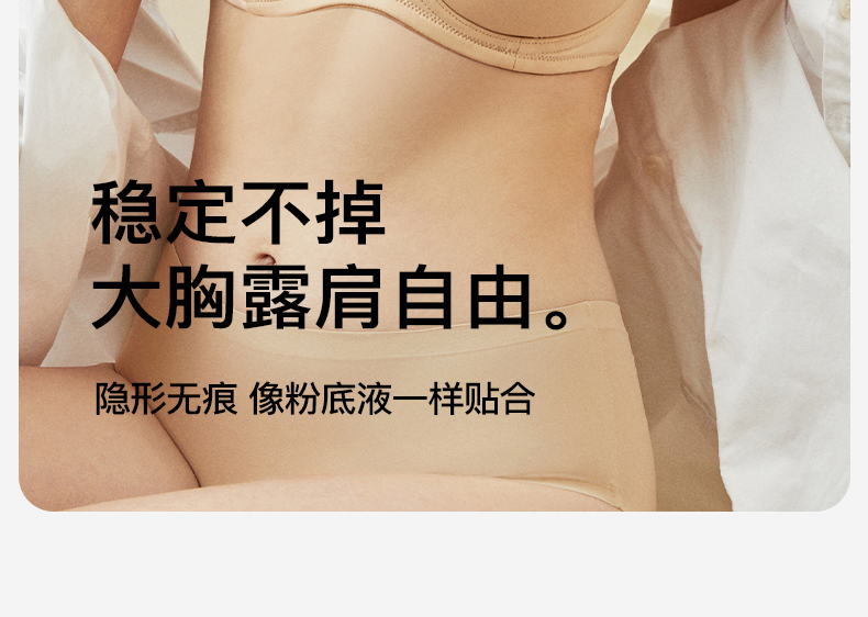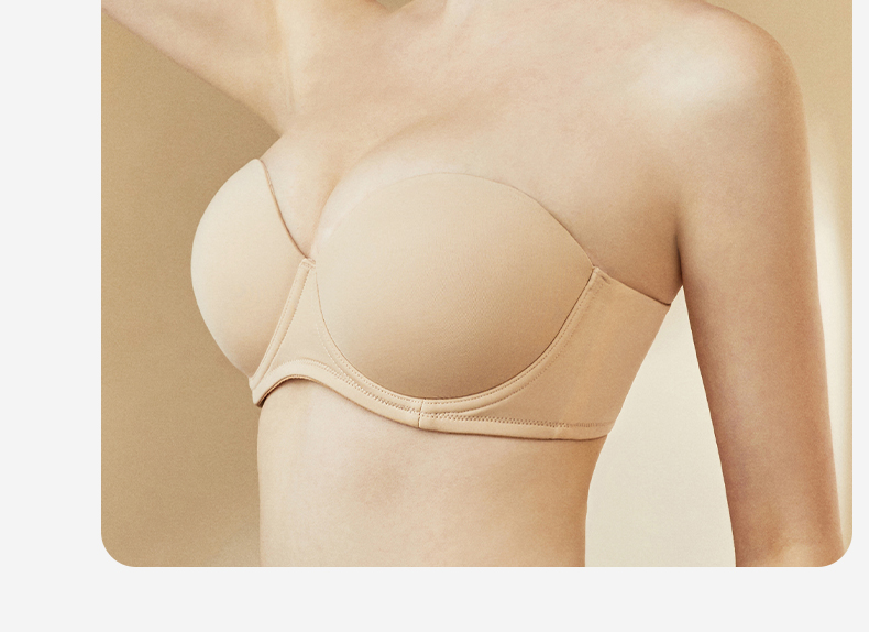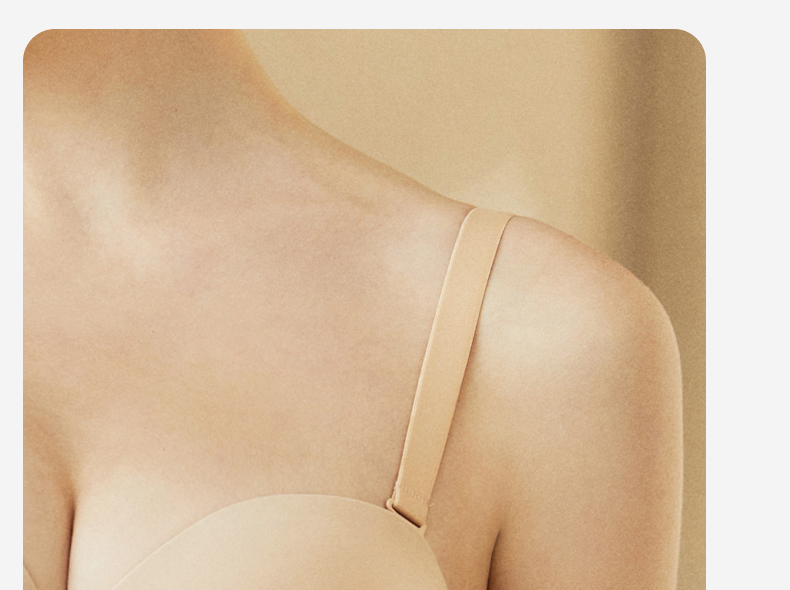 梦芭蒂无肩带薄款内衣女大码无痕聚拢防滑防掉软钢圈文胸素月光面