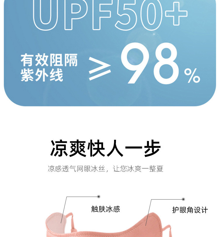 【凉感防晒!UPF50+渐变色防晒口罩】肤感冰凉,柔软轻薄,修饰脸型,腮红护眼角女脸基尼遮阳骑行冰丝面罩下