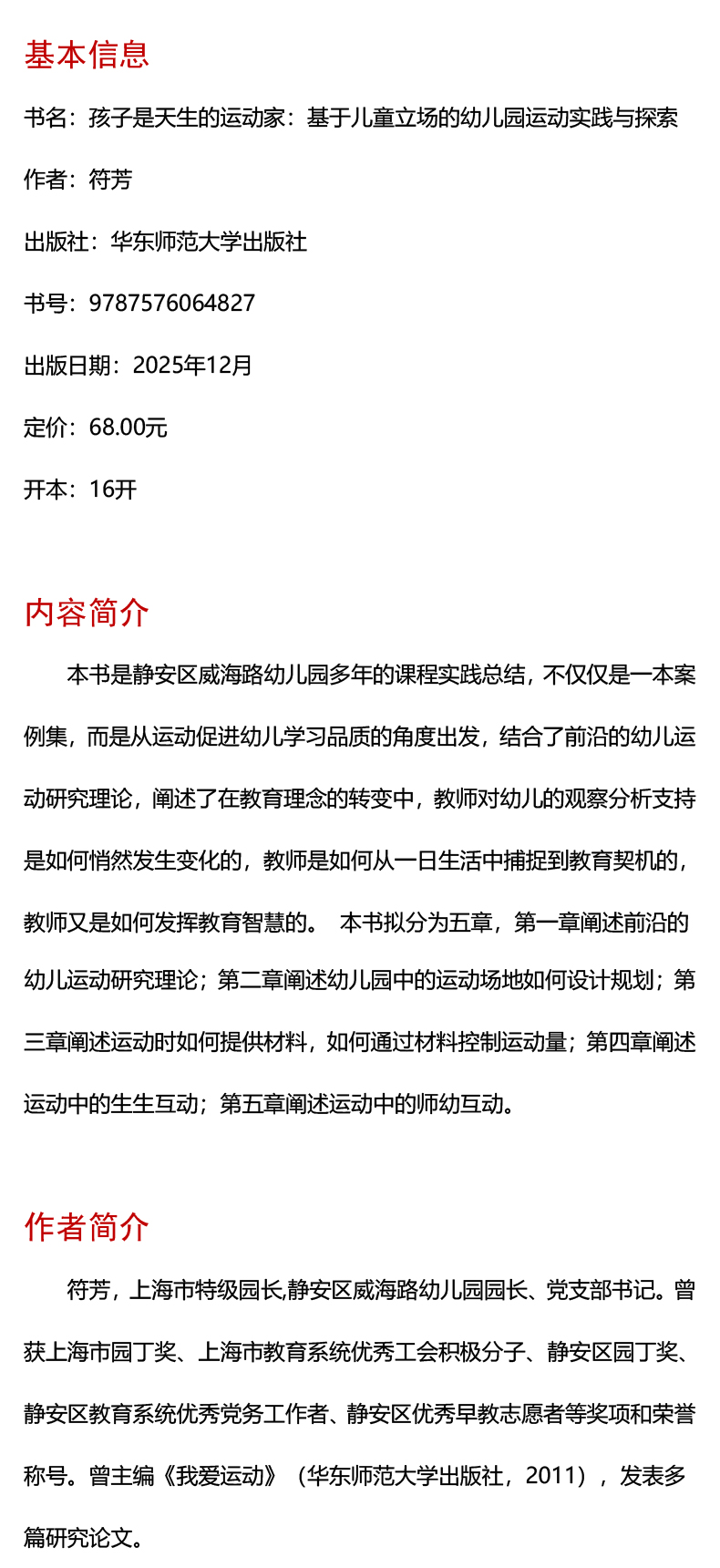 孩子是天生的运动家 基于儿童立场的幼儿园运动实践与探索 符芳