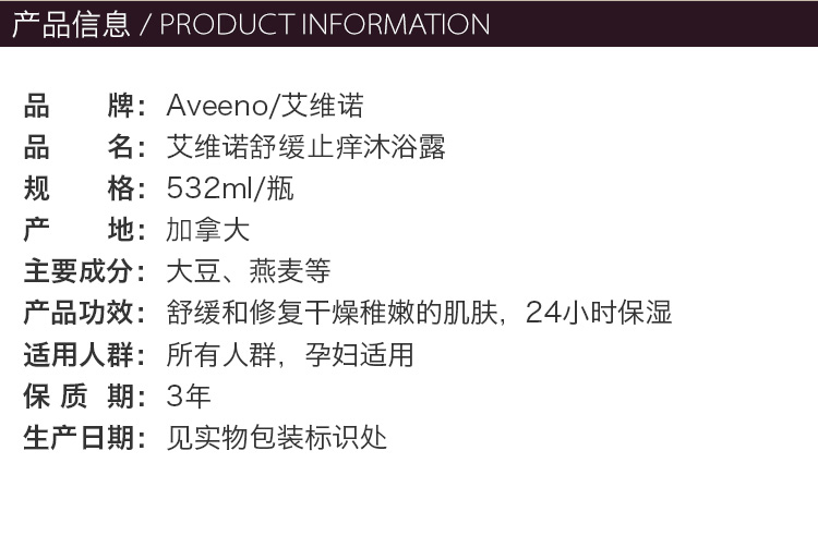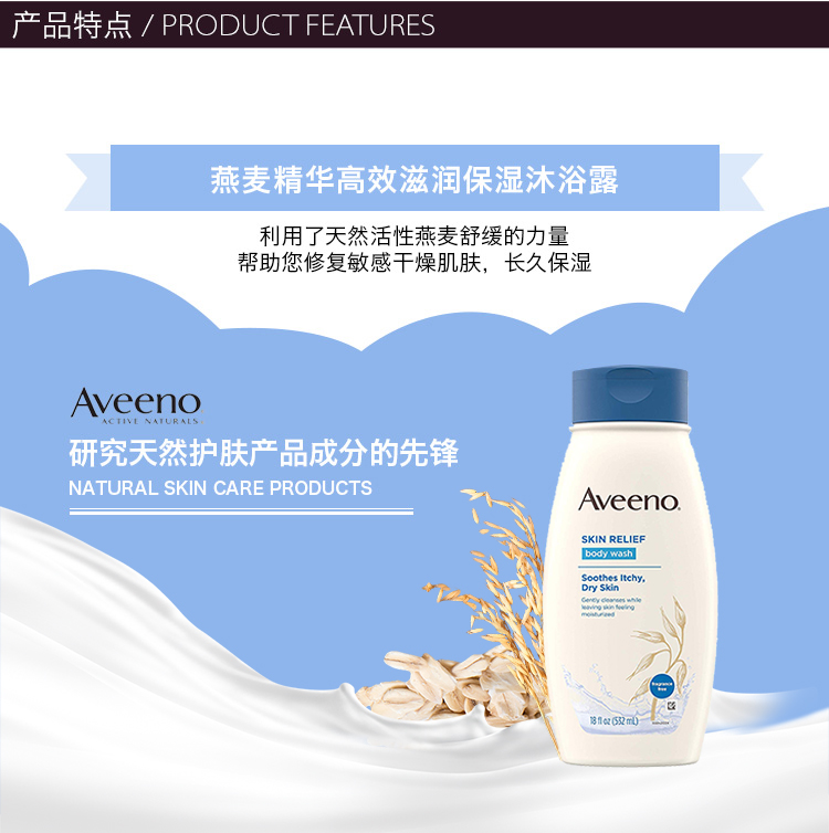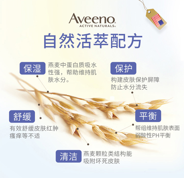 【保税仓】美国Aveeno 孕妇成人艾维诺天然燕麦舒缓止痒沐浴露 532ml/瓶