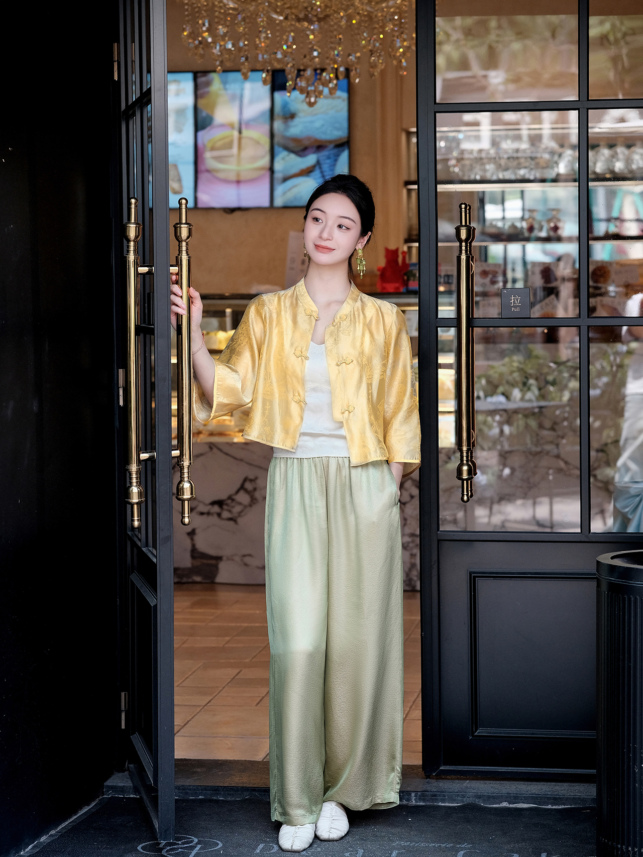 盛唐婧| 新中式真丝绡花苞盘扣小外套开衫