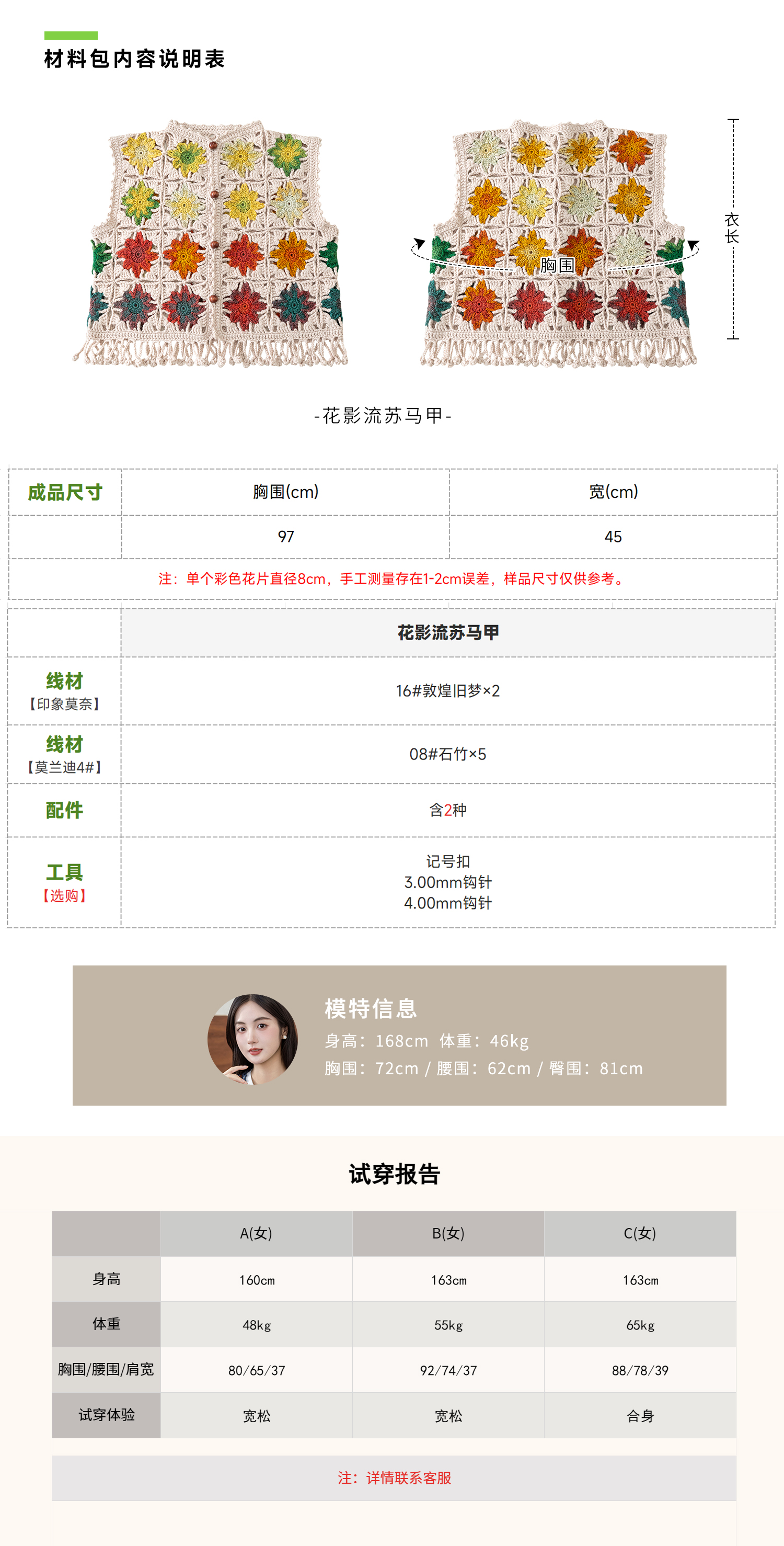 苏苏姐家花影流苏马甲手工编织羊毛线上衣diy钩针毛线团材料包