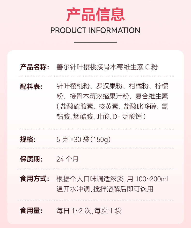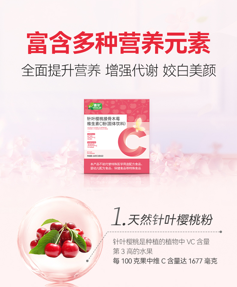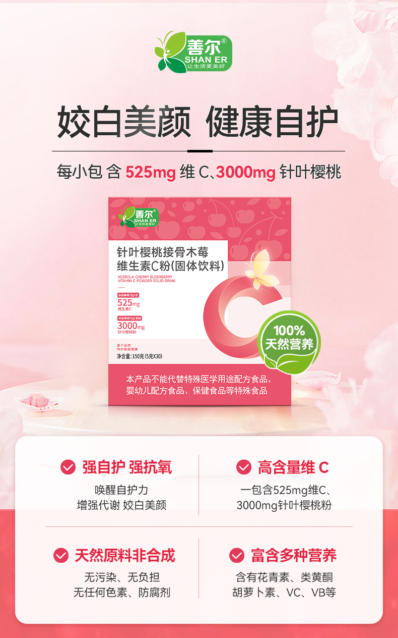 膳贞善尔针叶樱桃接骨木莓维生素C粉 高含量天然VC