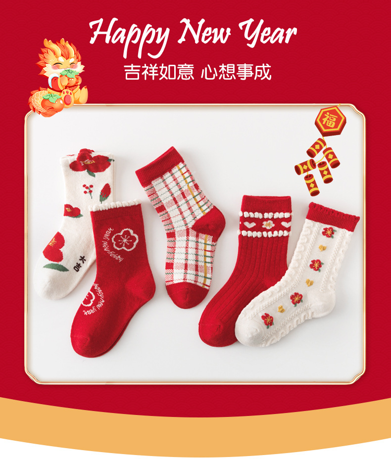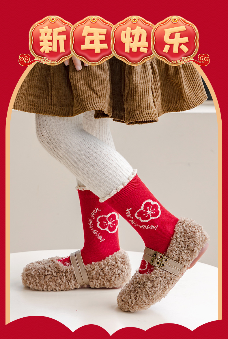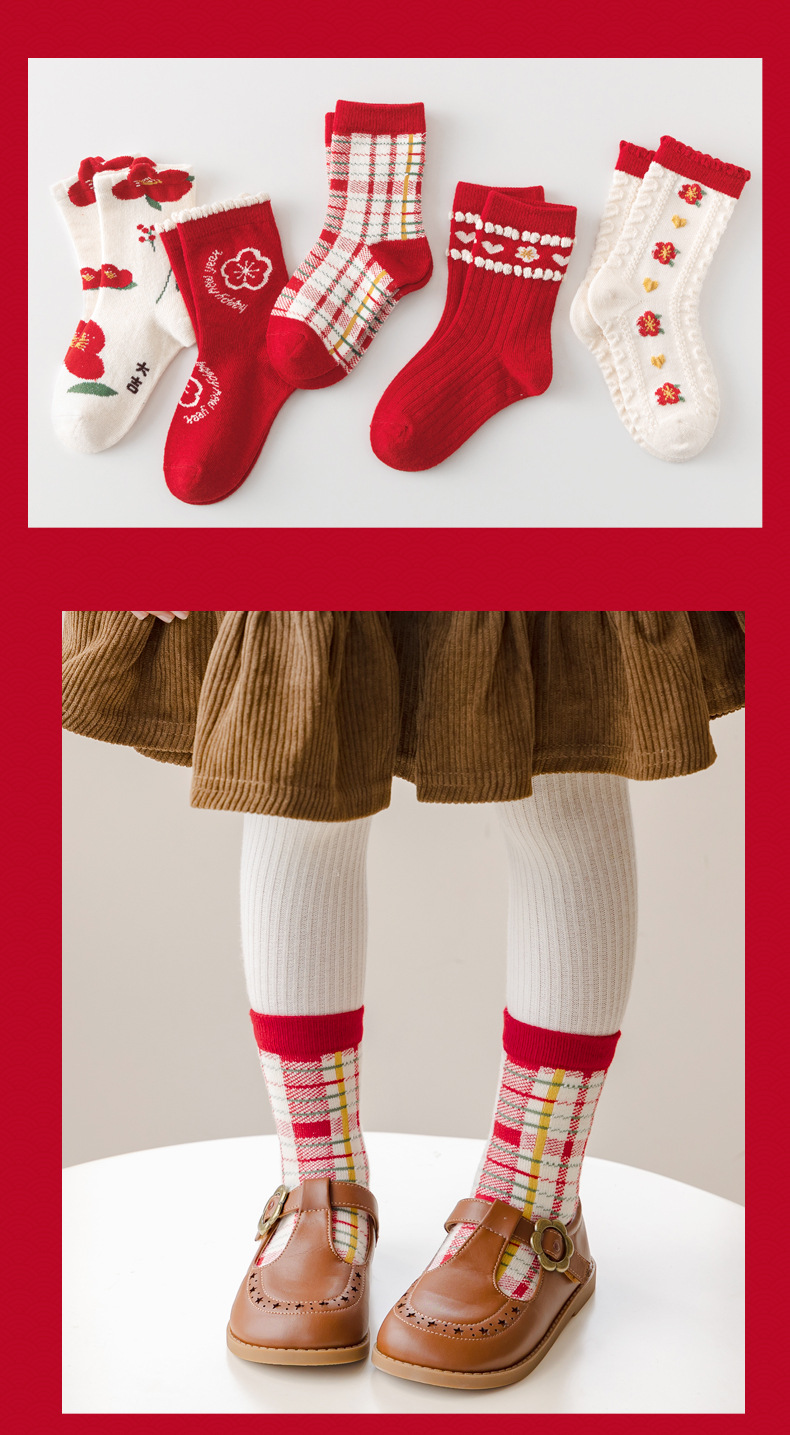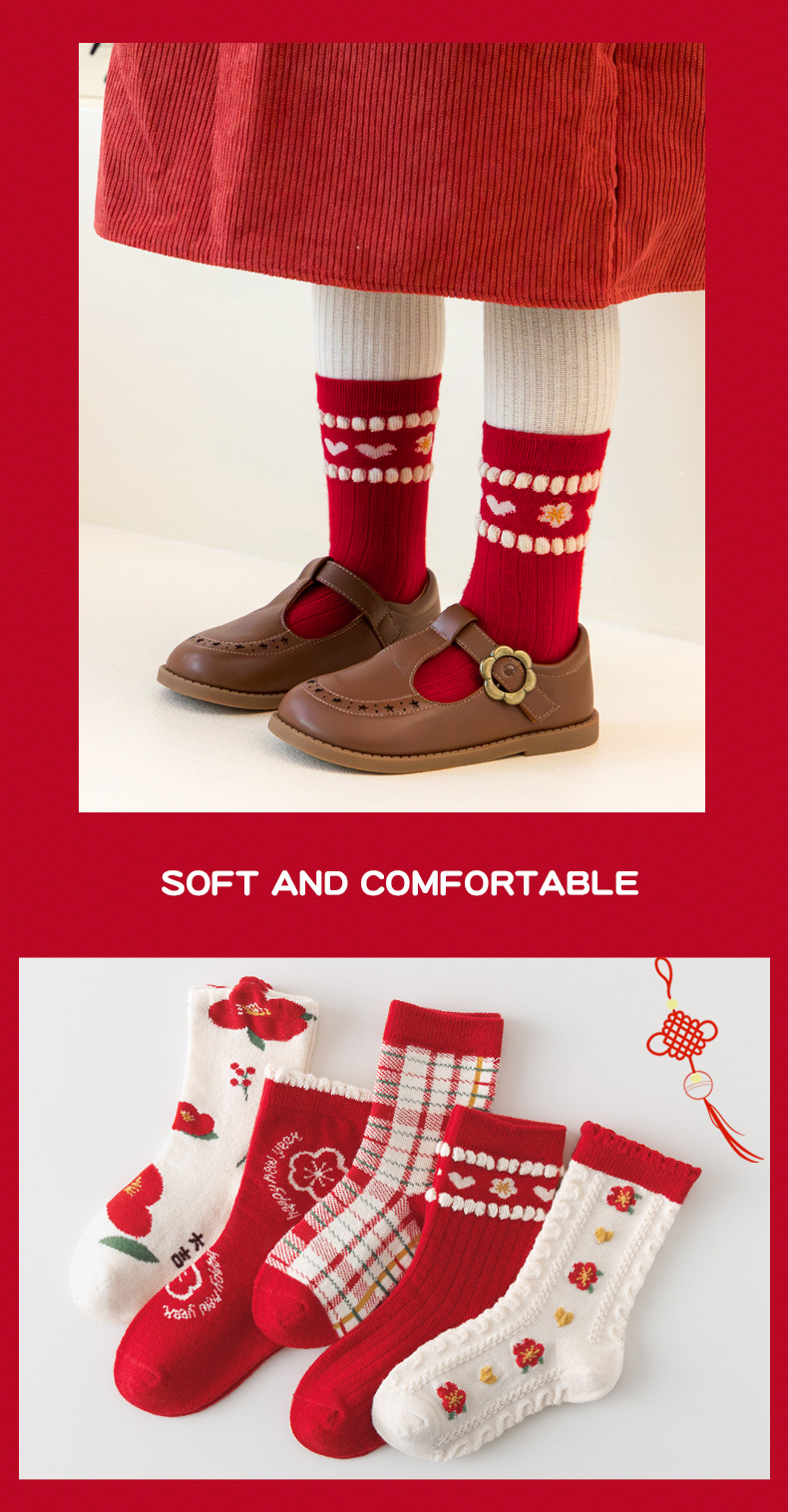 【5双装❗️大红新年儿童袜】秋冬大红新年袜中筒袜,A类品质更放心❗️新春1-12岁宝宝袜棉质,秋冬大红色中筒圣诞袜子