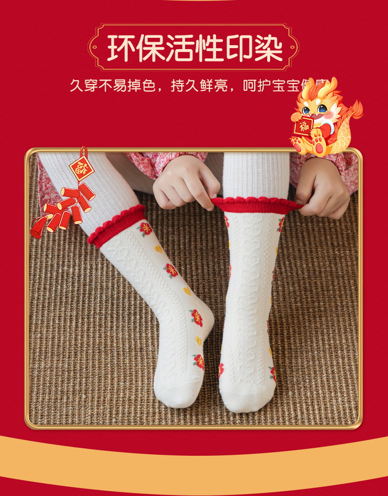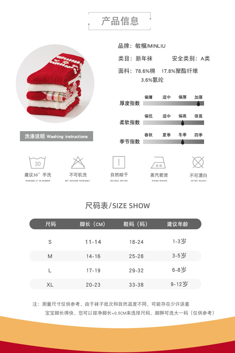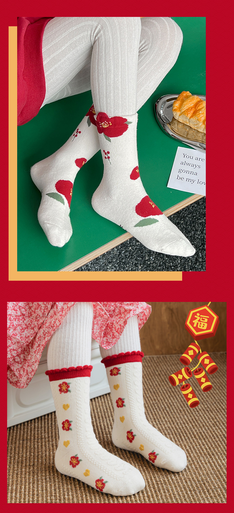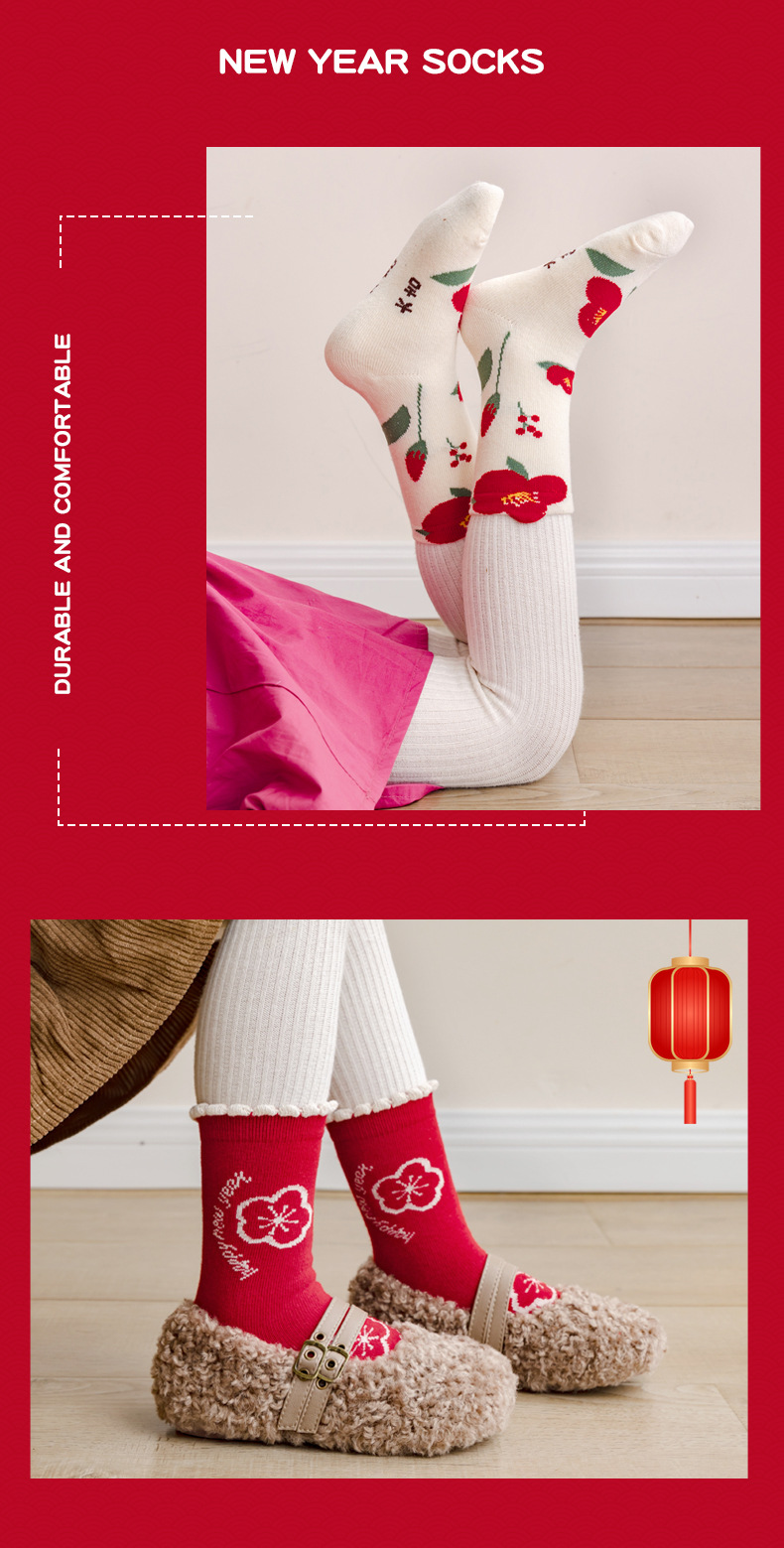 【5双装❗️大红新年儿童袜】秋冬大红新年袜中筒袜,A类品质更放心❗️新春1-12岁宝宝袜棉质,秋冬大红色中筒圣诞袜子