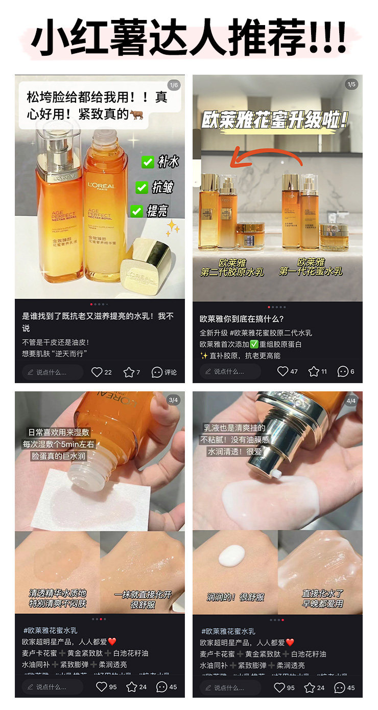 中小样▲欧莱雅小蜜罐花蜜水乳 中样65ml+50ml