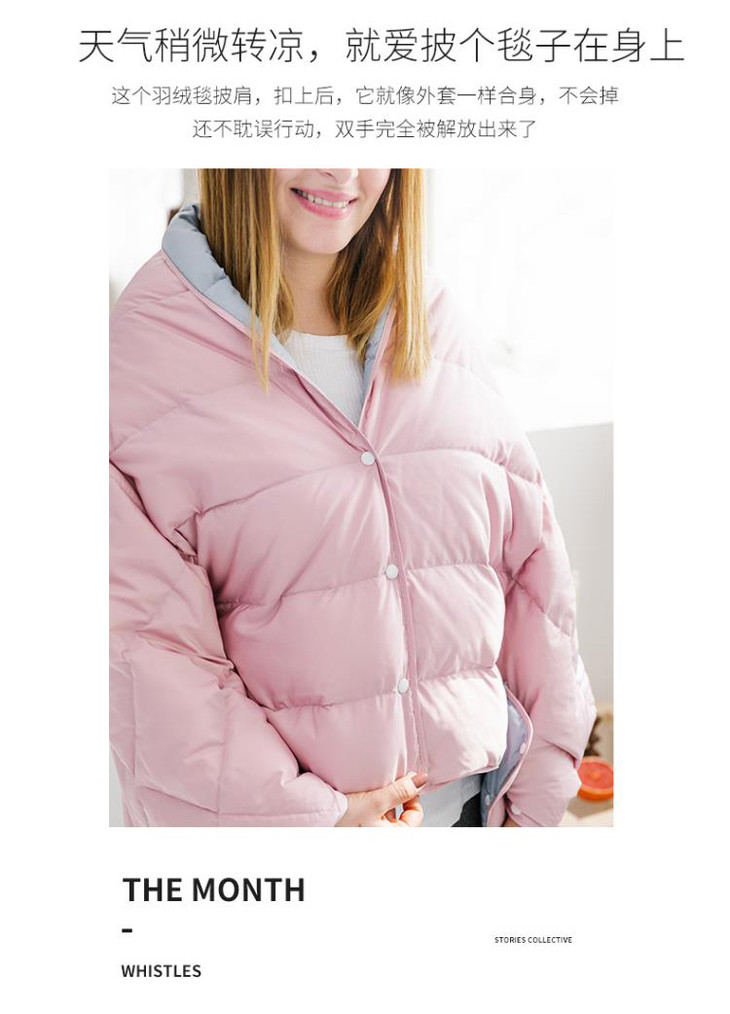 【哪里寒热哪里】多功能便携羽绒披肩毯 95%白鹅绒填充 800+蓬松度 温暖舒适 3秒立热