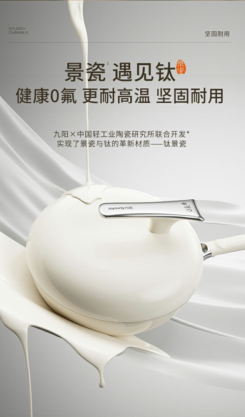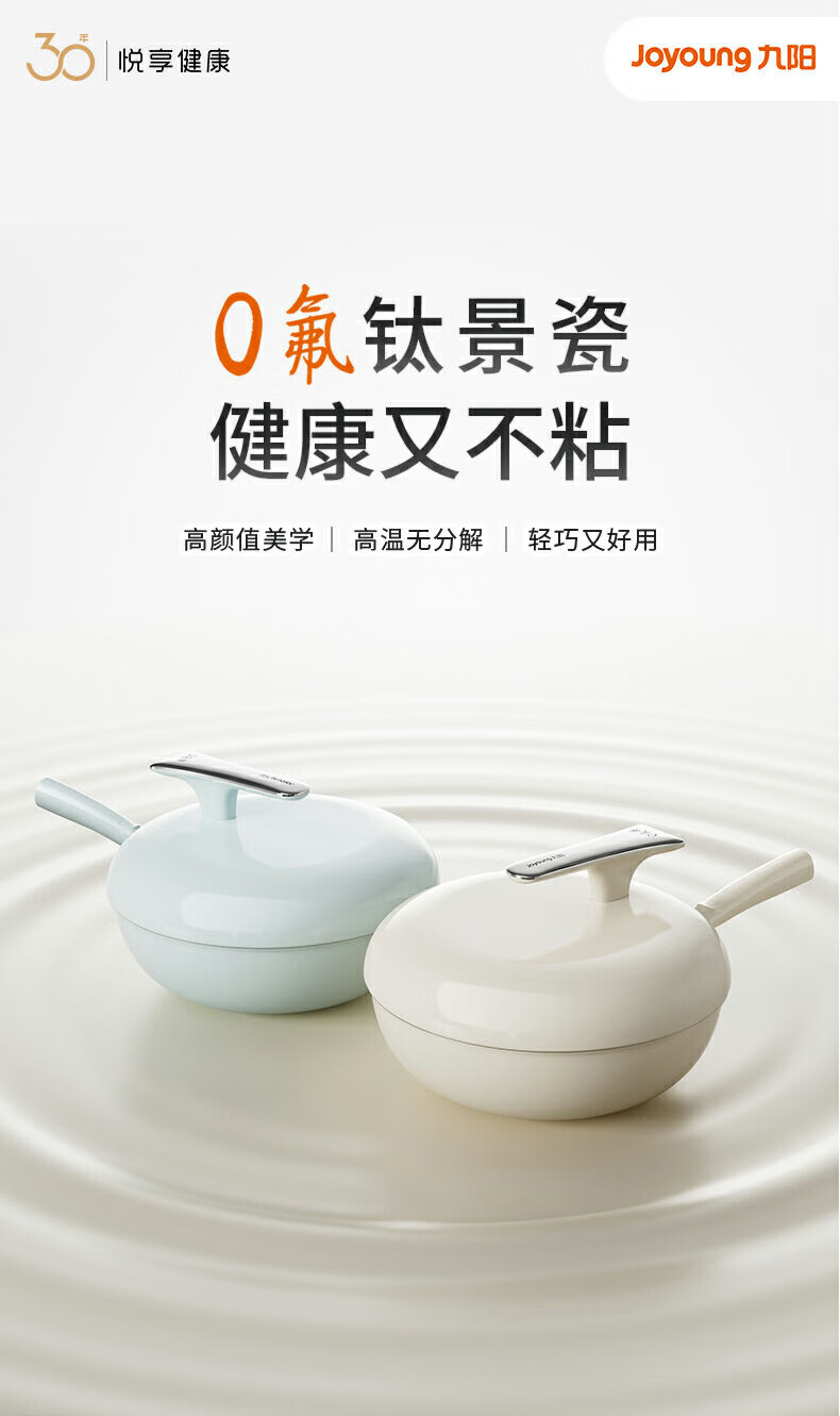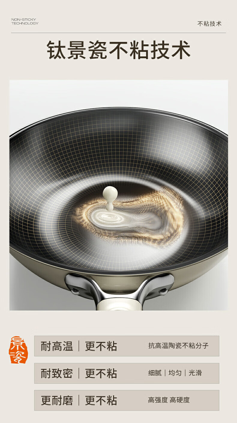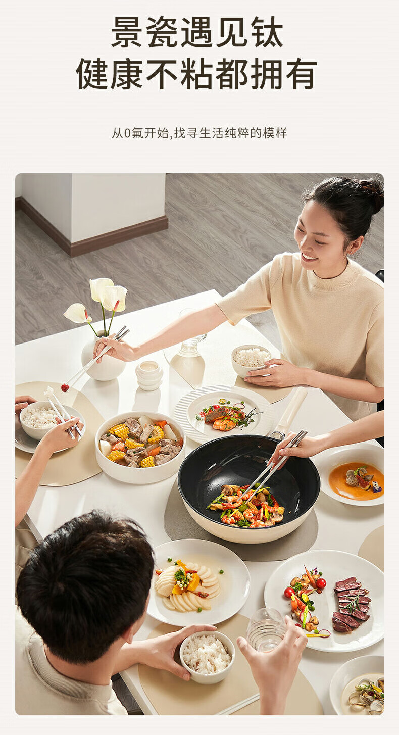 九阳0氟钛景瓷炒锅健康有钛陶瓷不粘平底锅电磁炉明火通用炒菜锅