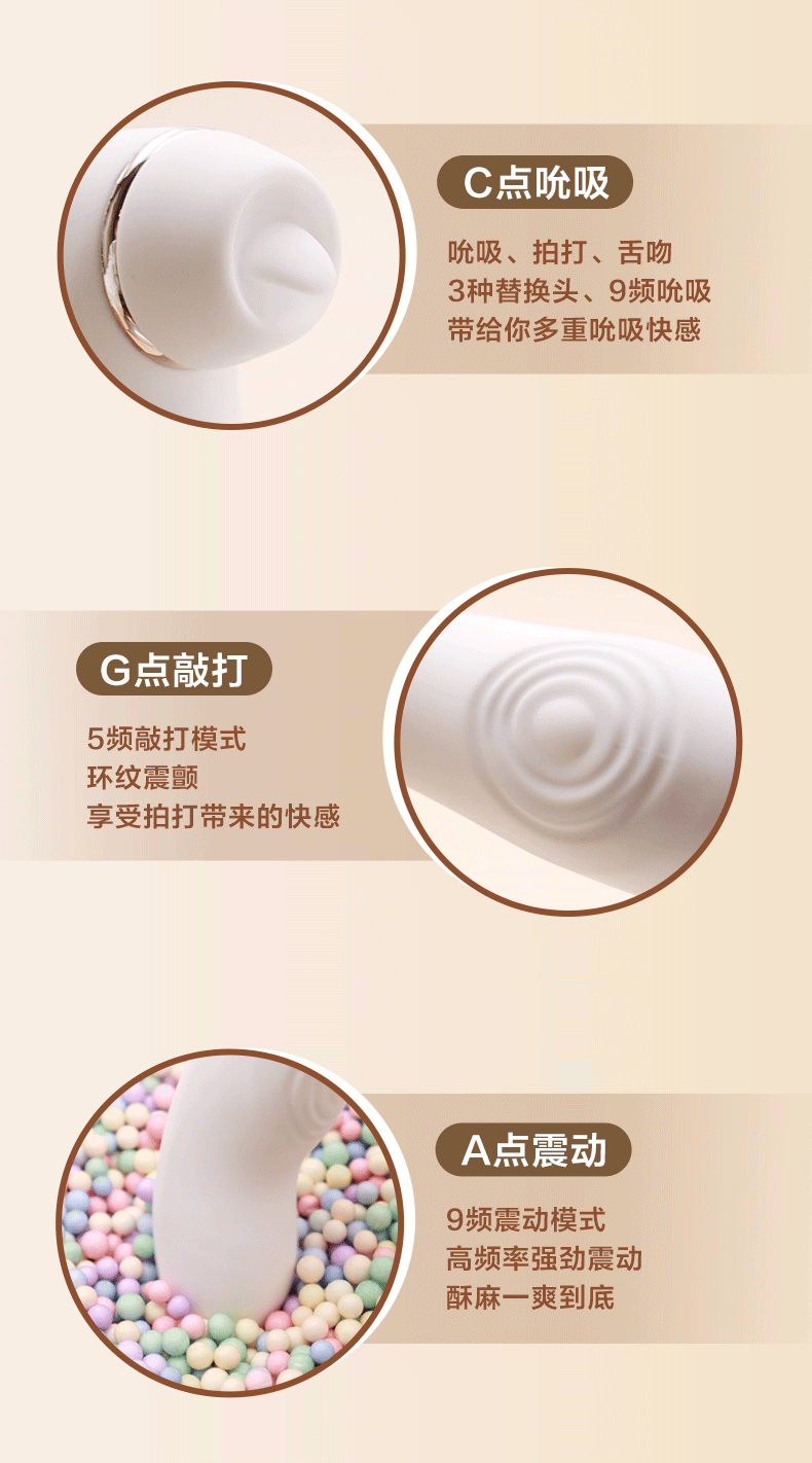 lovetide爱潮 白月光 吮吸震动拍打三头可换 多功能双头震动棒