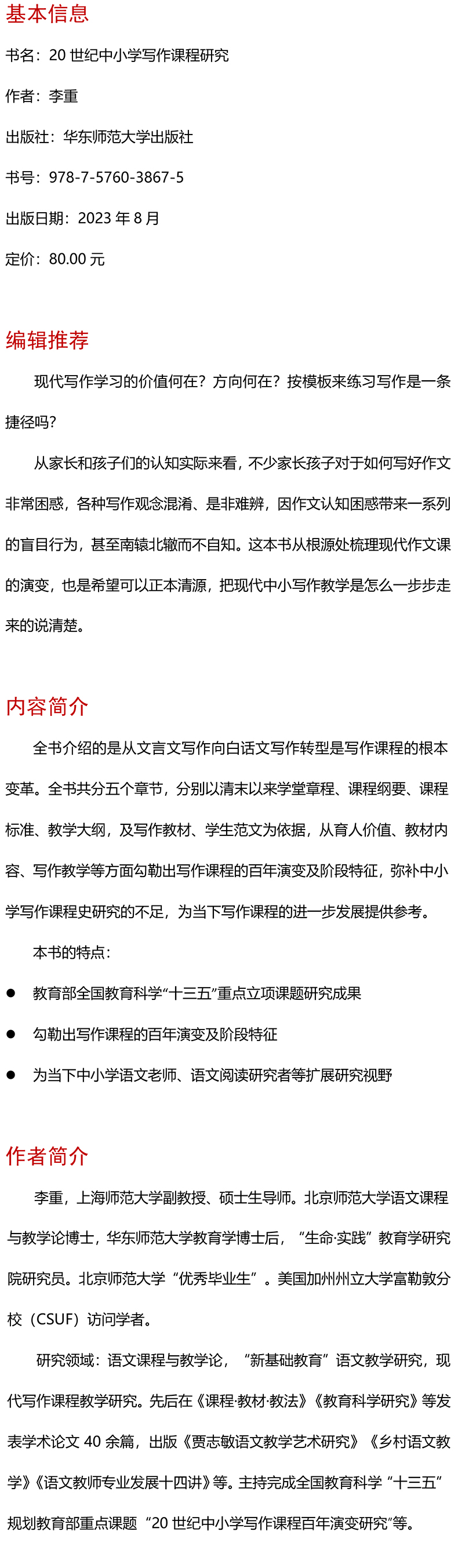 20世纪中小学写作课程研究 李重著 现代写作学习
