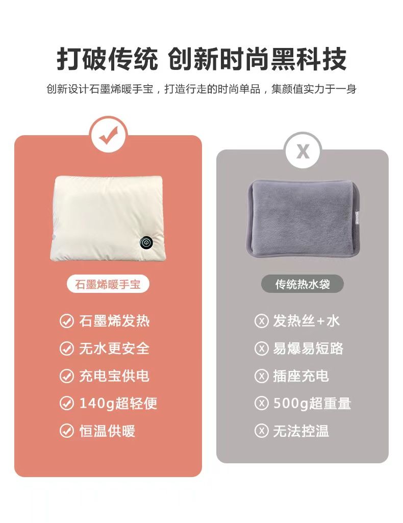 石墨烯无水暖手袋usb充电式双面发热防爆随身携带速热保暖电暖宝