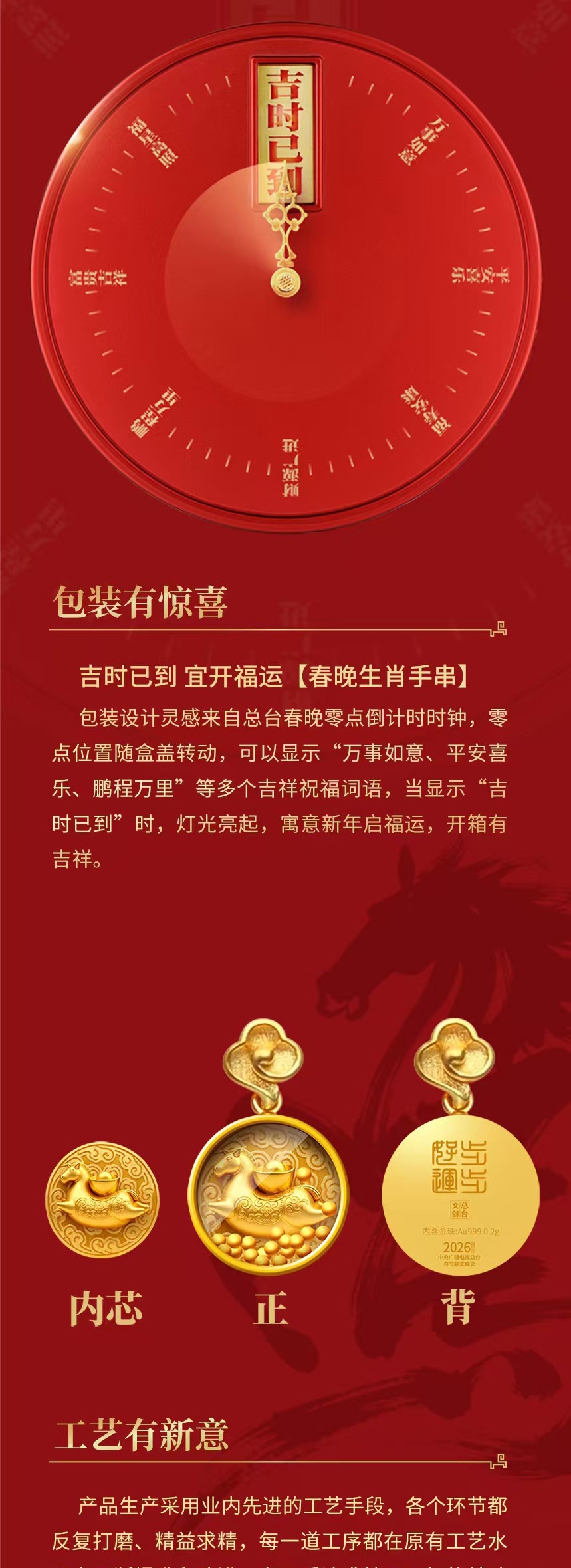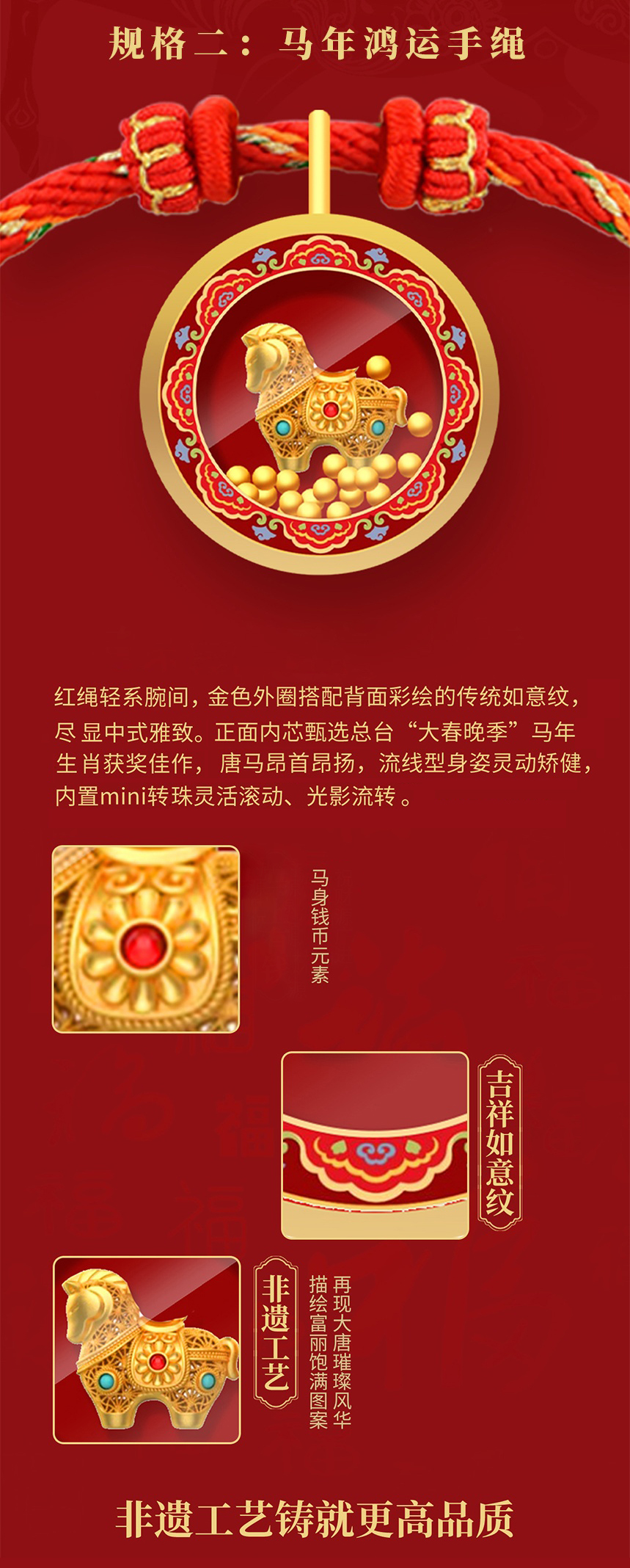 央视春晚 足金马年纪念款红绳