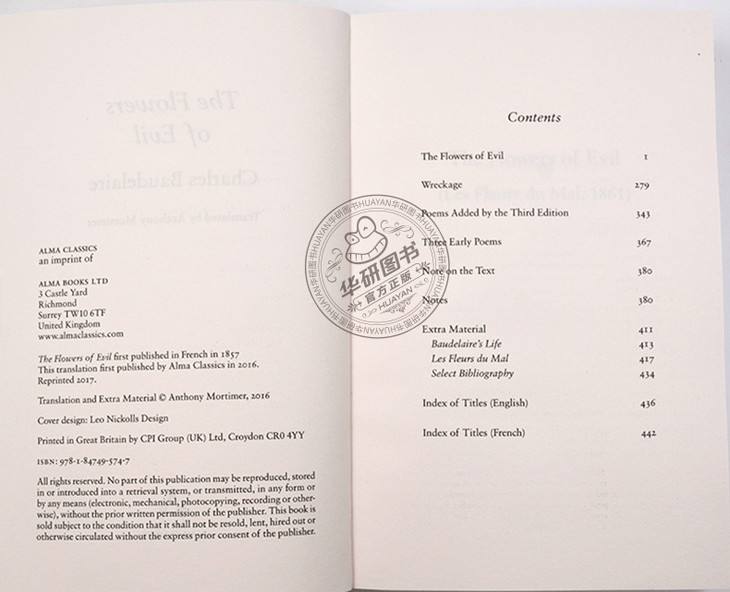 恶之花 英文原版 文学书 The Flowers of Evil Alma Classics 波德莱尔 法英双语版 法国诗歌 英文版原版书籍 进口英语书
