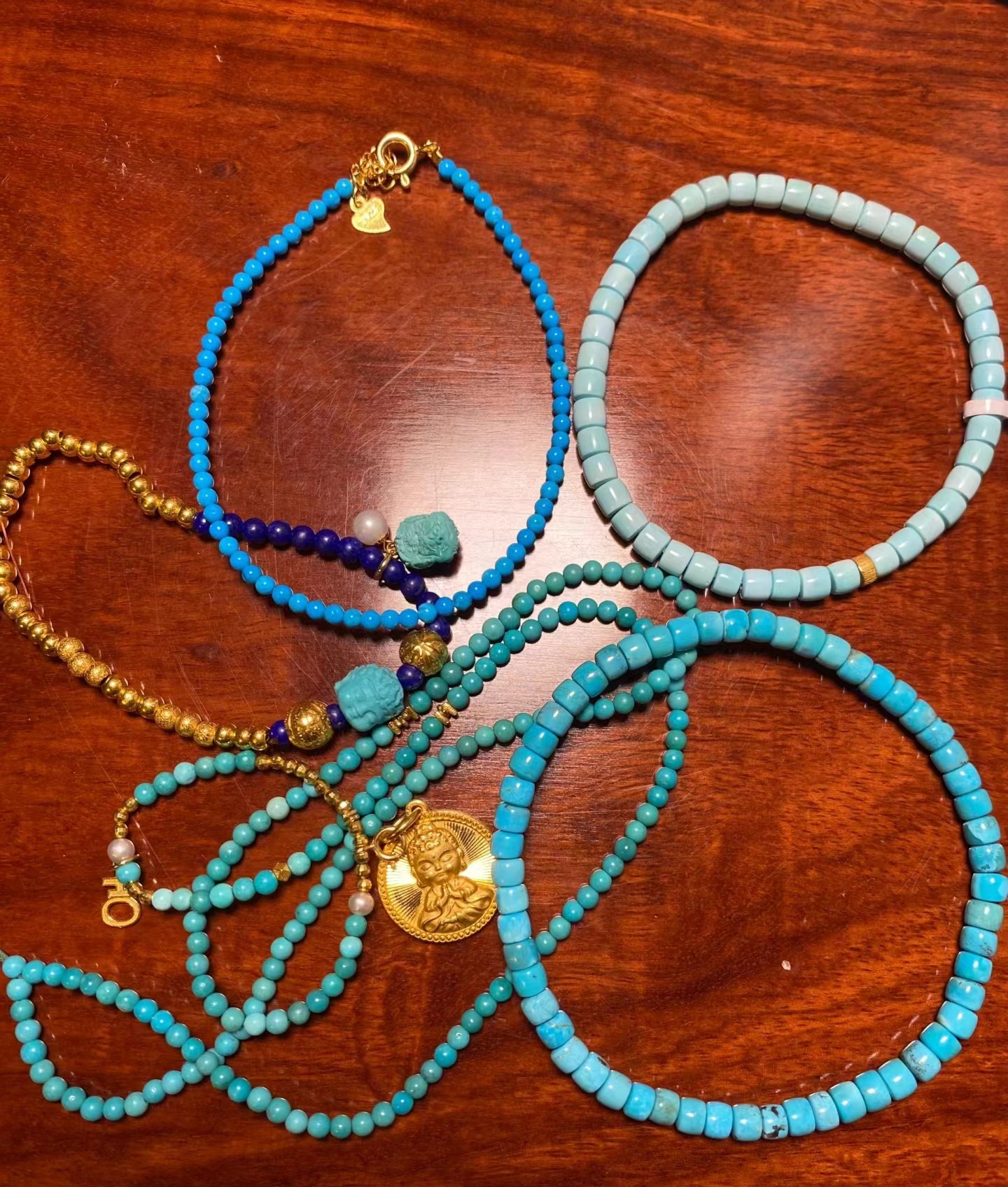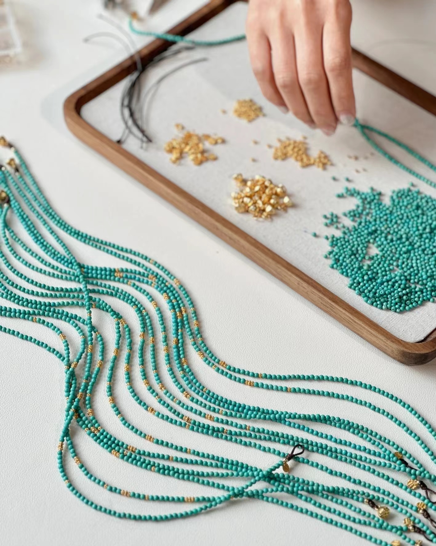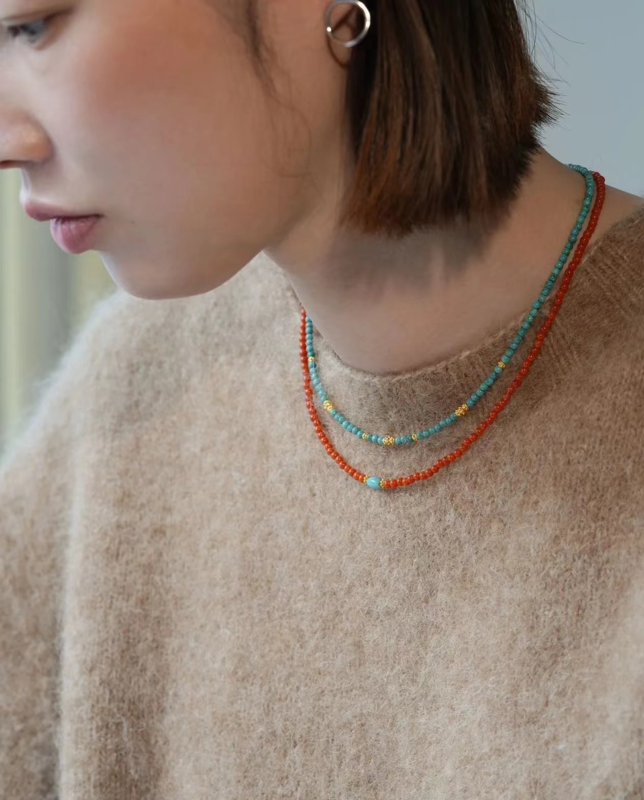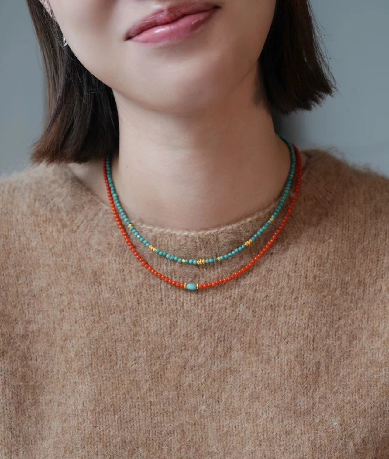 采用天然绿松石3mm小米珠 也称之为优化绿松石。
