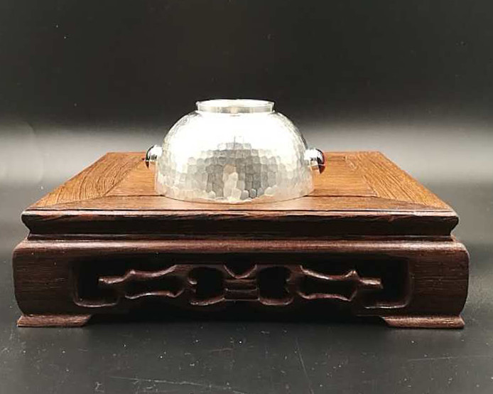 寸大师的作品造型高雅别致,图纹细腻,融方、圆、曲、直为一体,具有较高的保存和收藏价值。市面上是28—33元一克,由于器型和工艺的不同,同款银壶也有不同的价格。