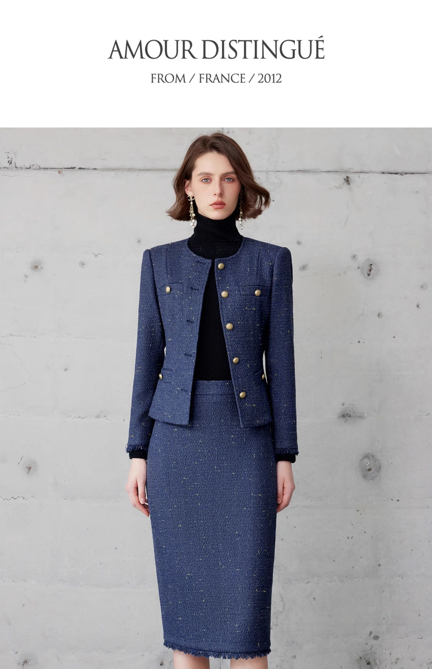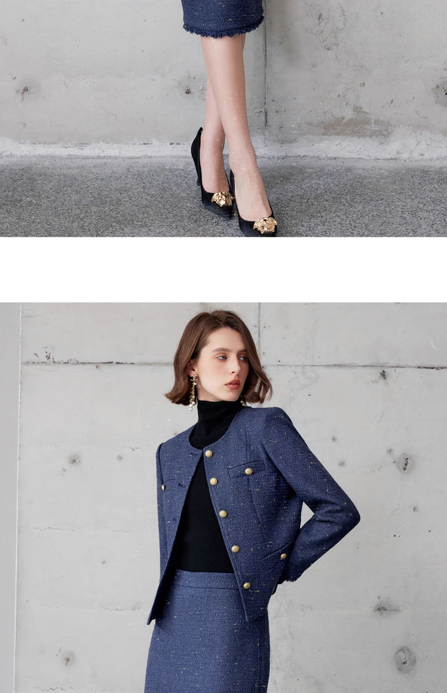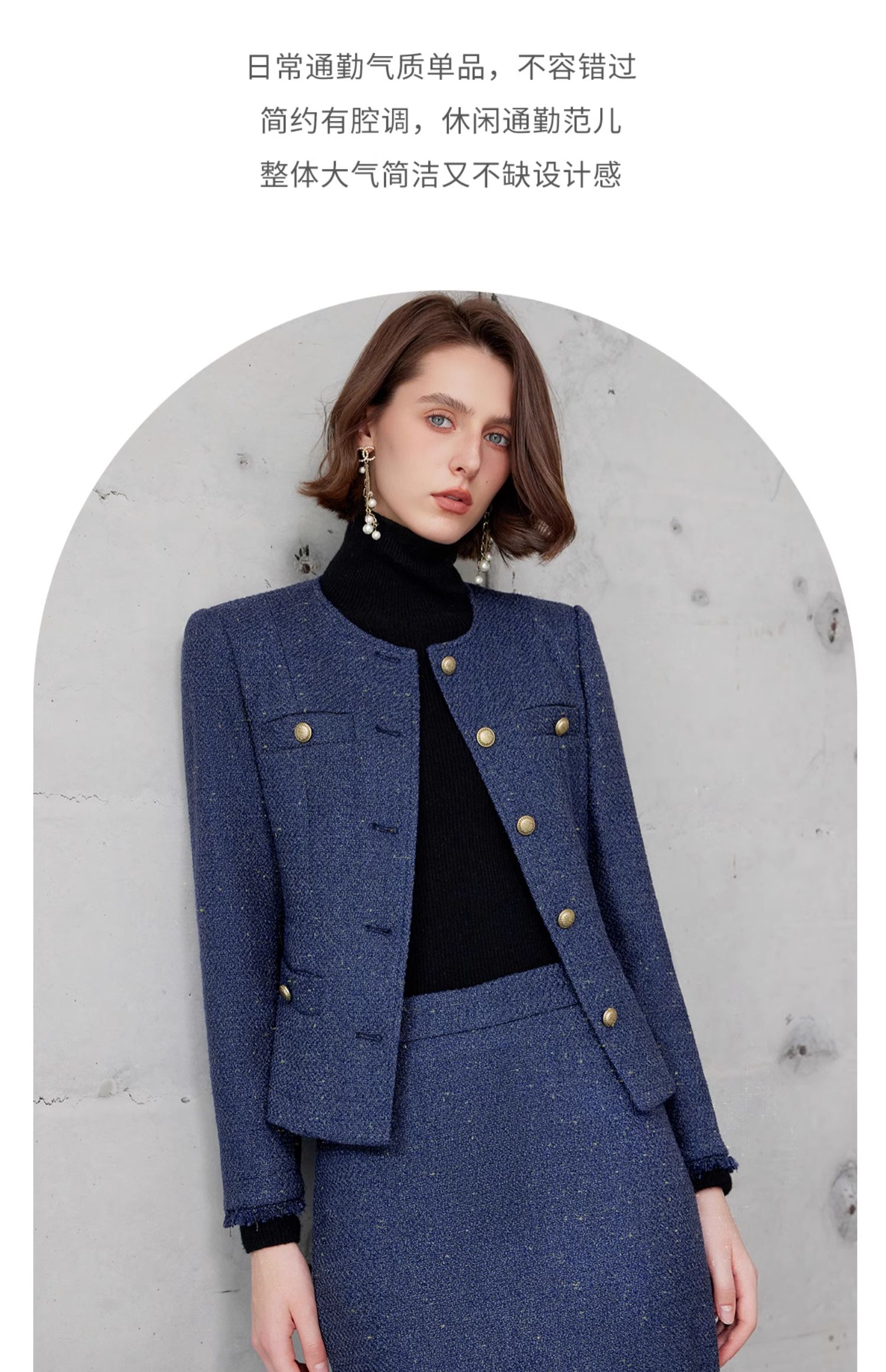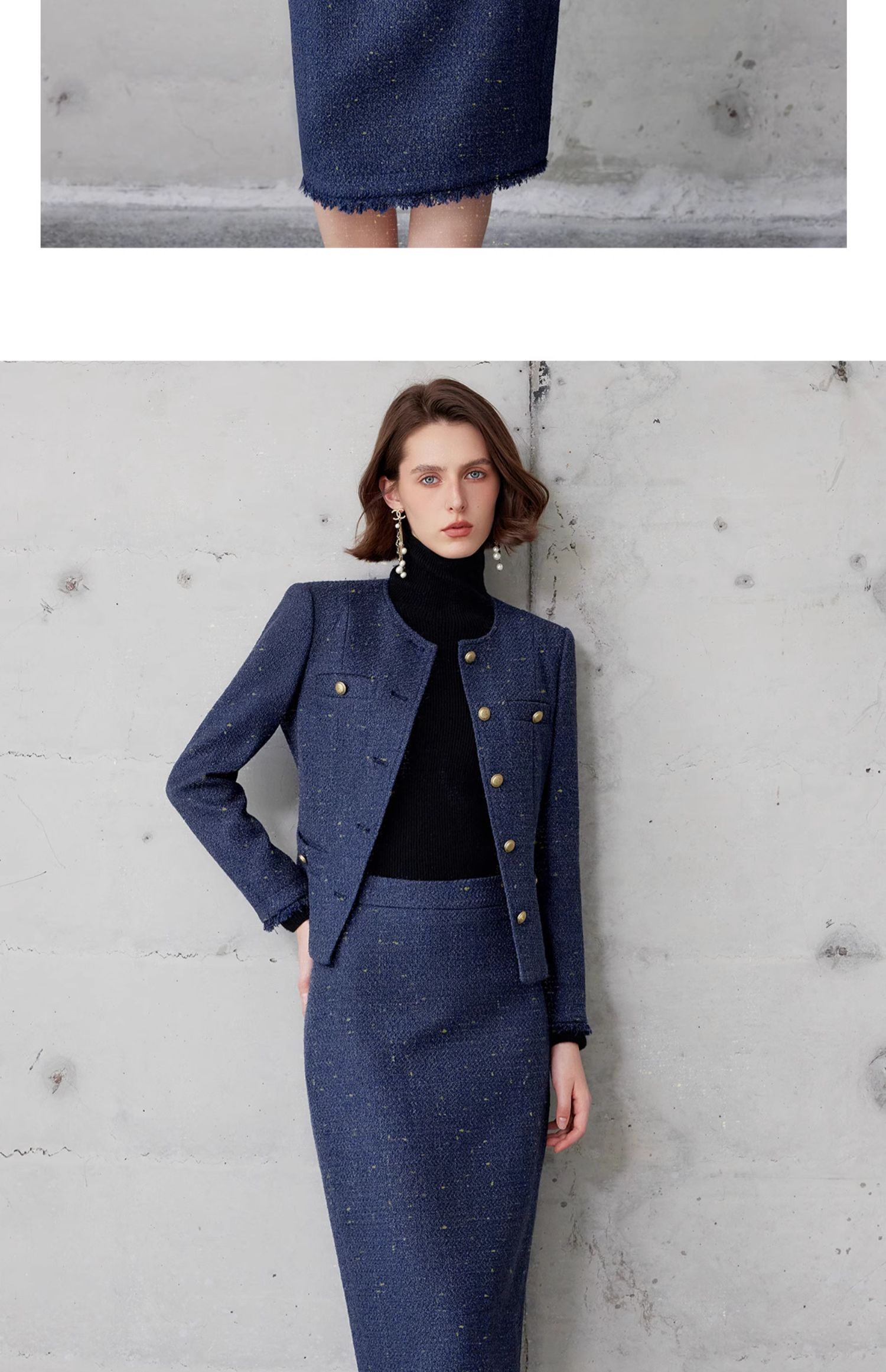 AD轻奢贵气金丝编织粗花呢套装2024冬季新款蓝色名媛小香风两件套