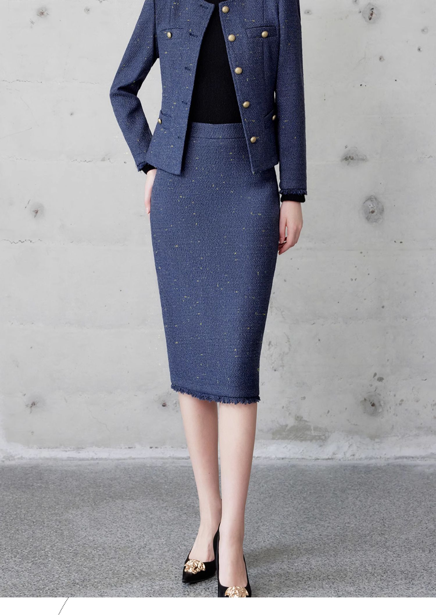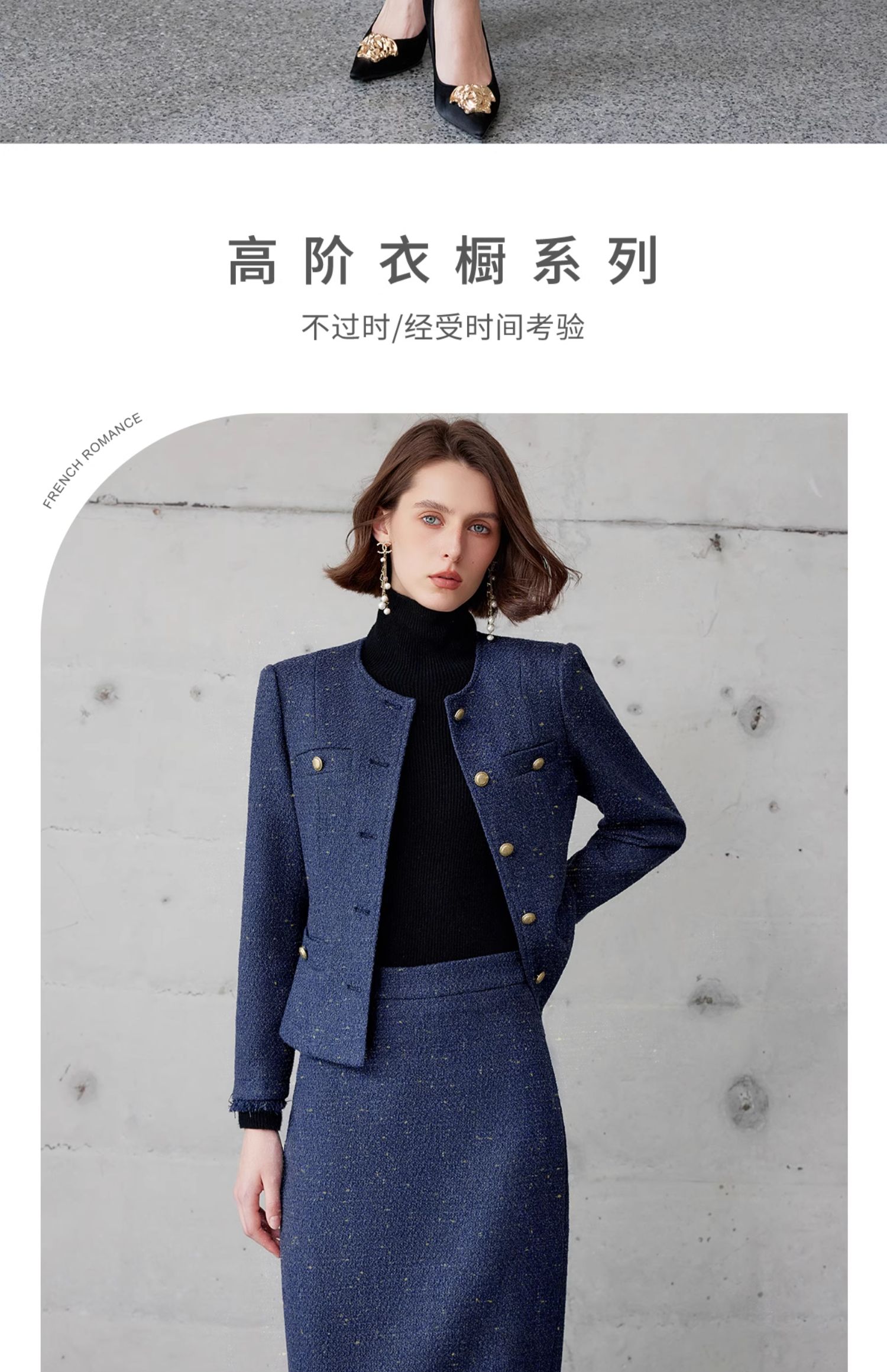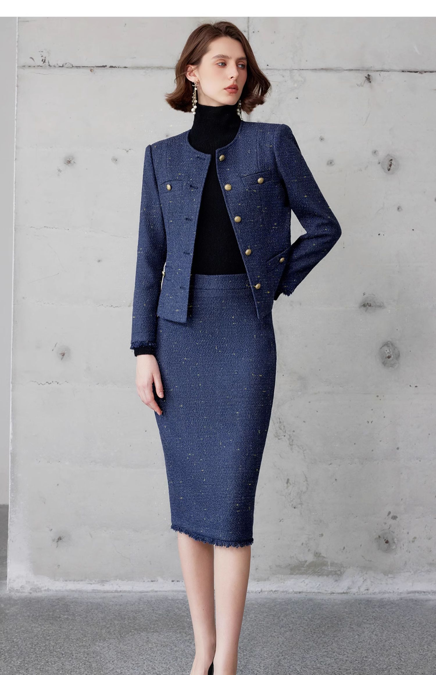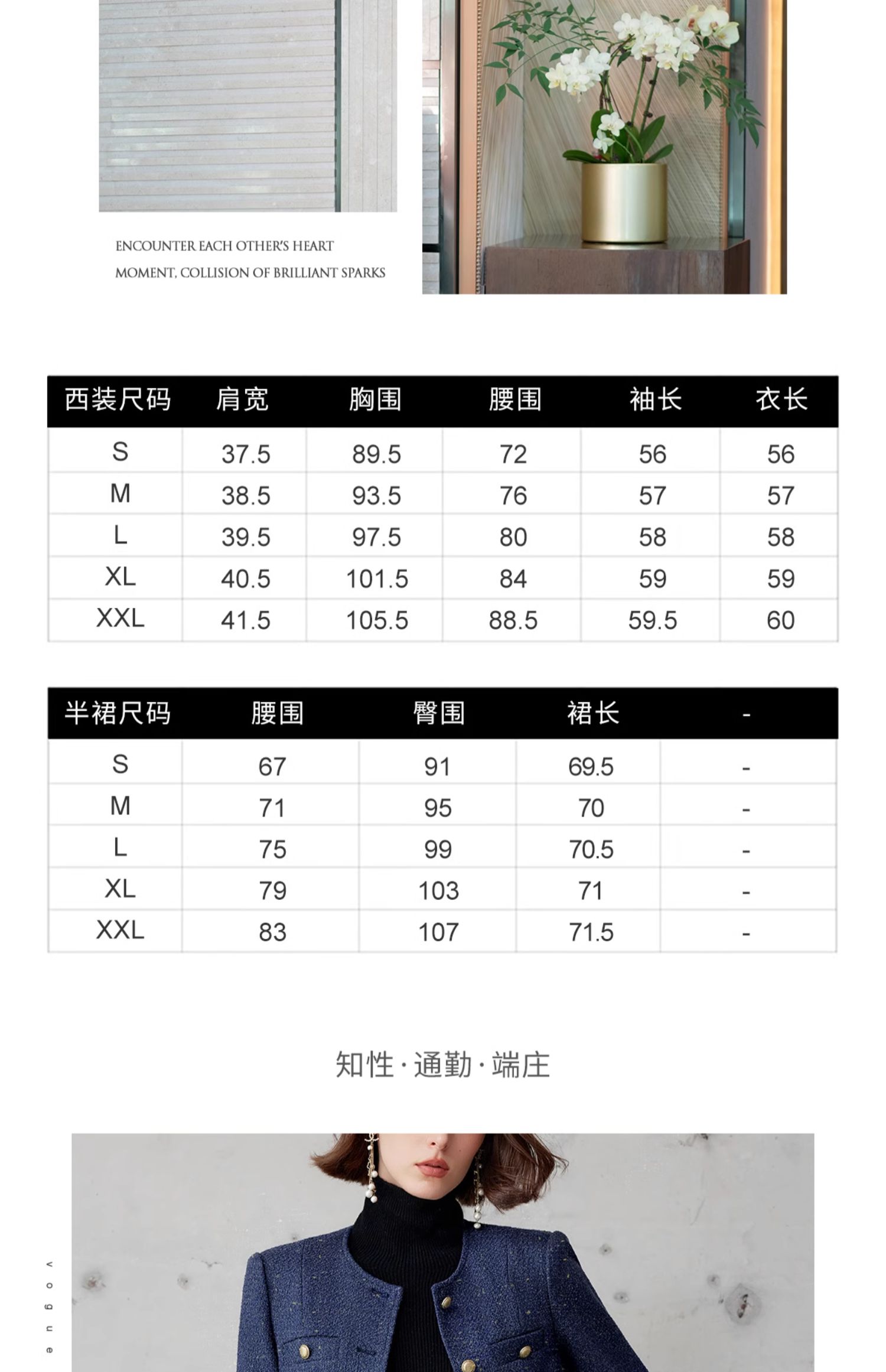 AD轻奢贵气金丝编织粗花呢套装2024冬季新款蓝色名媛小香风两件套