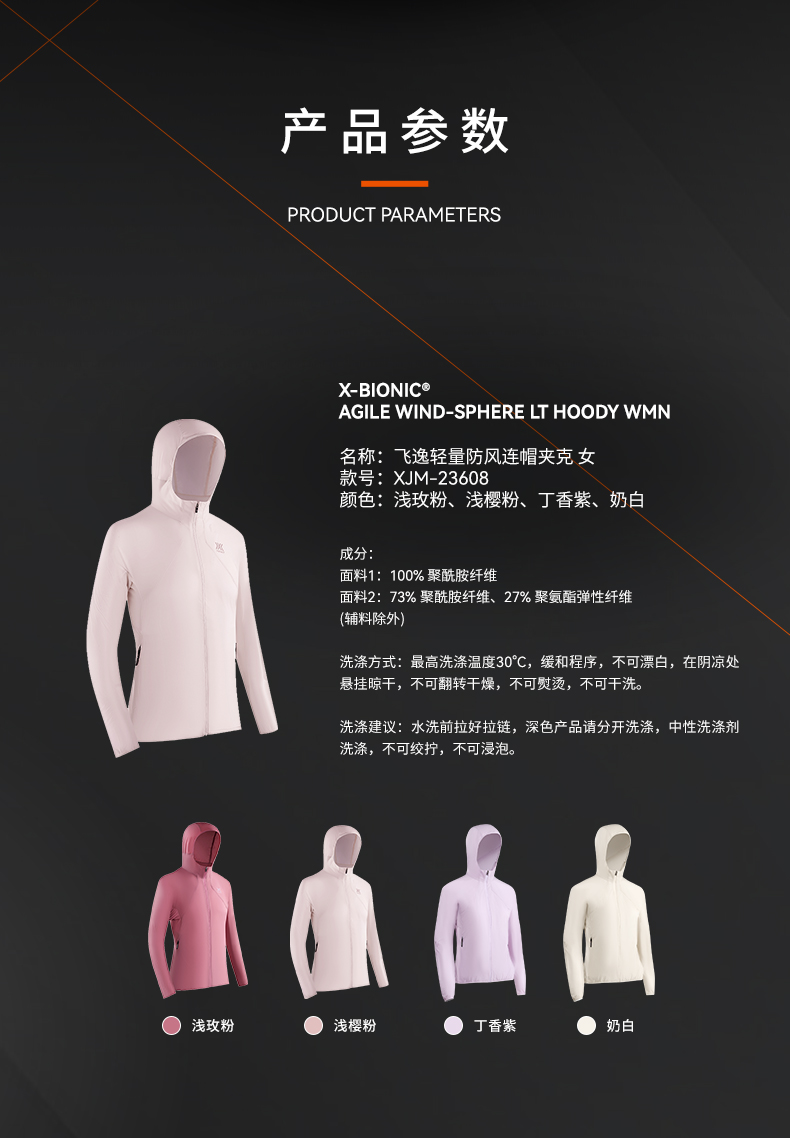 X-BIONIC飞逸轻量防风连帽夹克女 防泼水防晒防紫外线皮肤衣23608