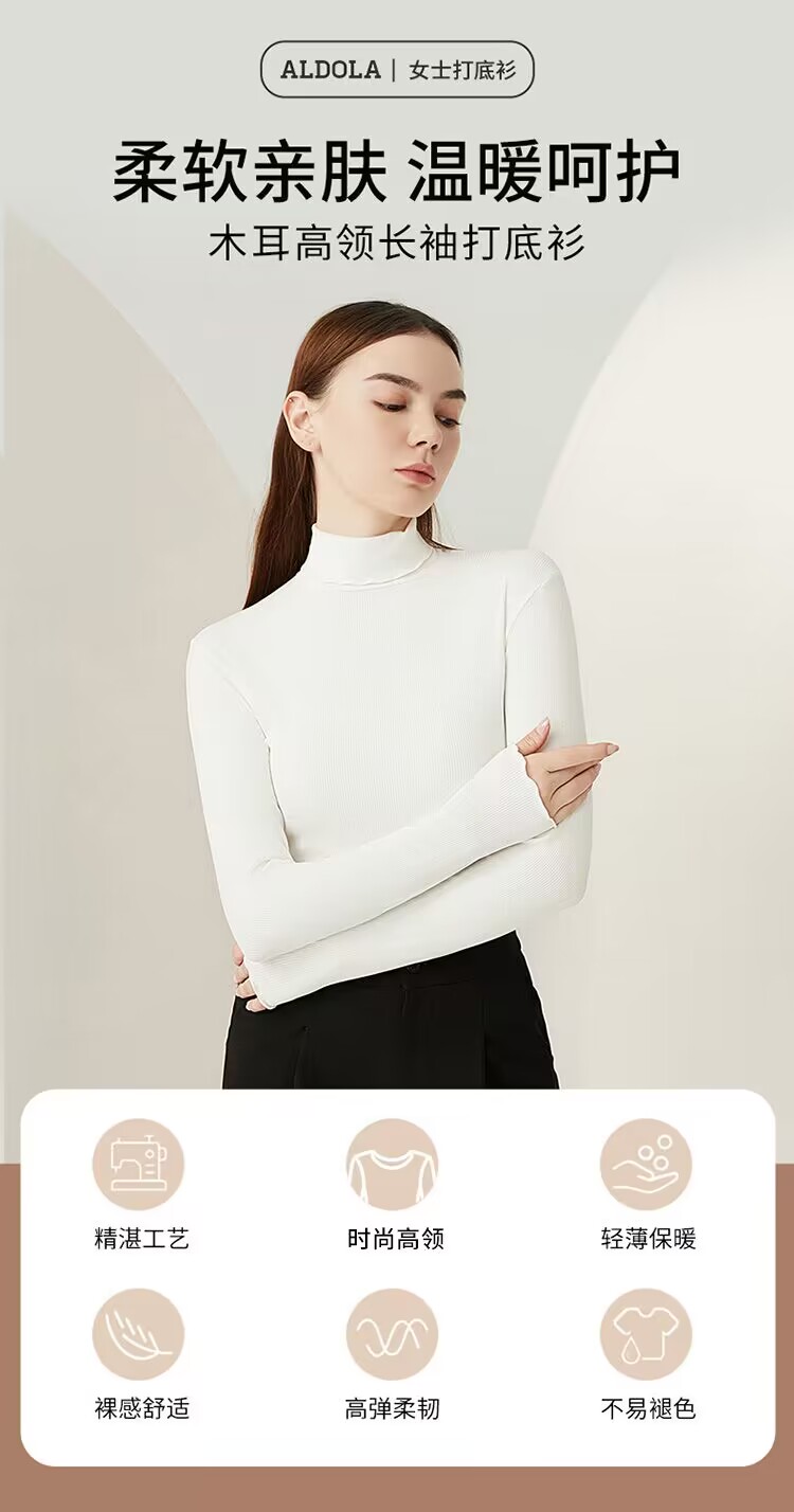 雅黛丽保暖内衣女秋衣上衣内搭打底衫冬季贴身高领显瘦长袖可外穿