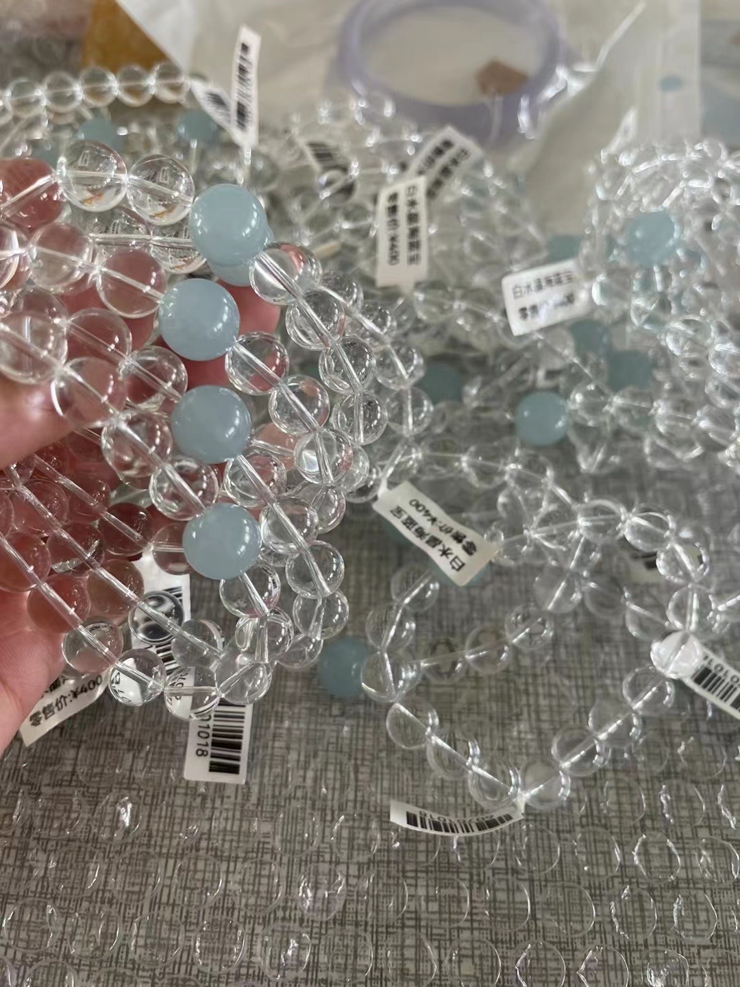 跟着国民女神露丝一起佩戴 属于夏日的海蓝宝水晶手串吧,轻松击退负面情绪,一眼就被它干净又纯粹的质地吸引,白水晶纯净透亮,海蓝宝清新淡雅,两者搭配在一起就是春夏的绝配海浪。纯天然水晶,咱们是持证的,细节感满分??天呐,我终于拥有了,温柔俏皮与衣橱里夏日的所有衣服都可以做到绝配的海!蓝!宝!海蓝宝恰到好处的点缀,犹如点睛之笔!注意天然水晶每一条都是不一样的!它的透明度不是完全一致的 里面会有一些天然的冰裂和棉絮 注意那是天然的?不是瑕疵!再三强调,不是乱七八糟的玻璃珠子咱们是天然水晶,天然水晶~~~白水晶+海蓝宝