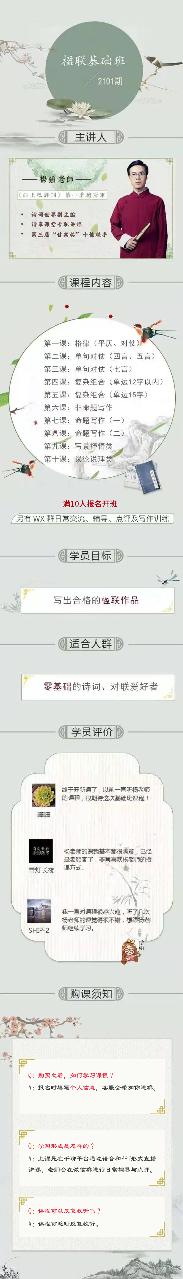 楹联基础班 | 对联知识与写作 零基础的诗词、对联爱好者