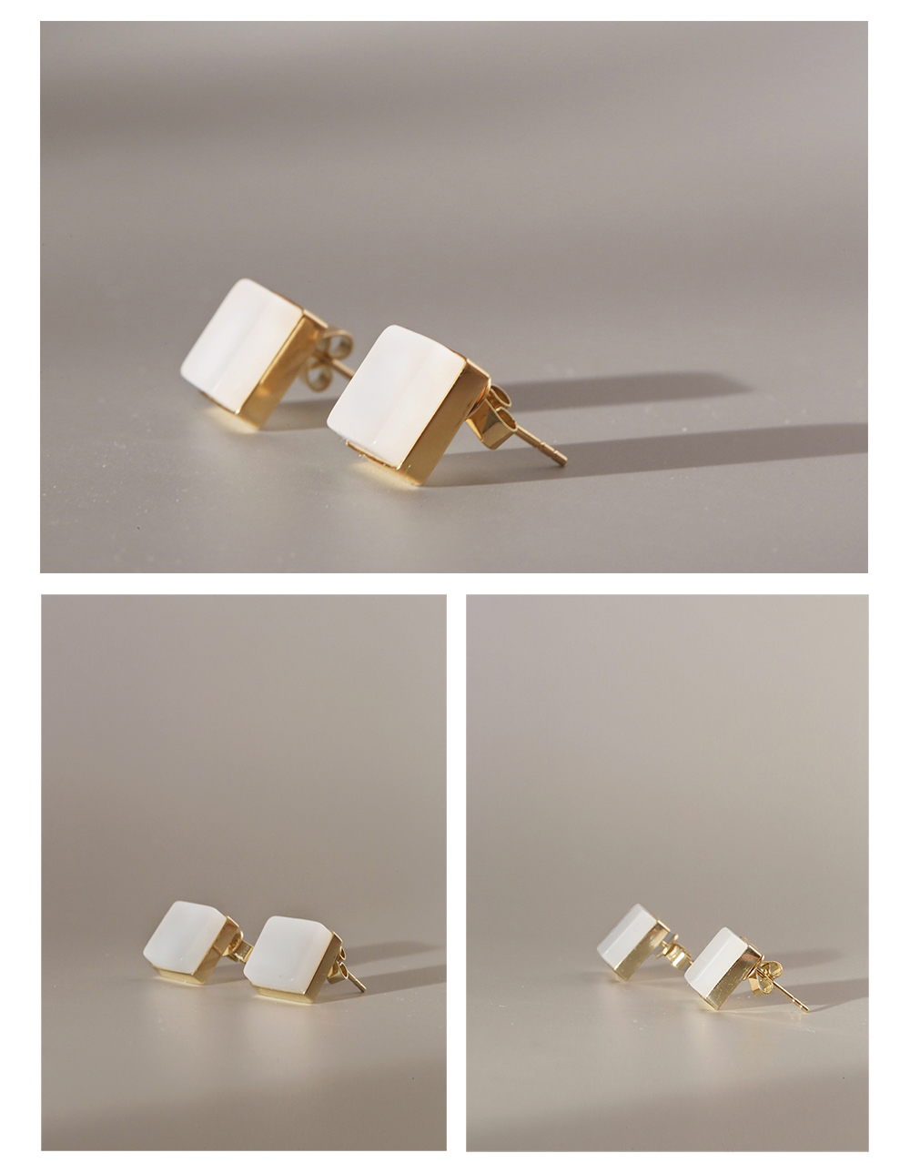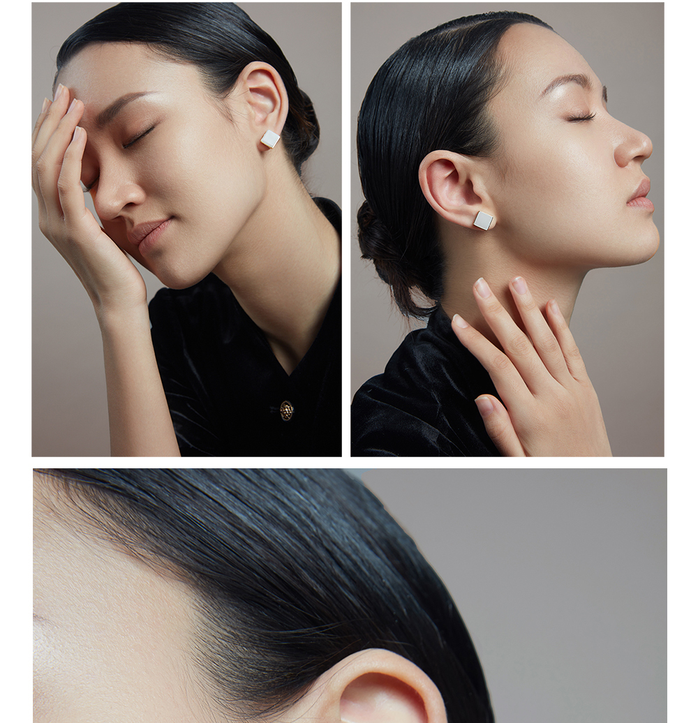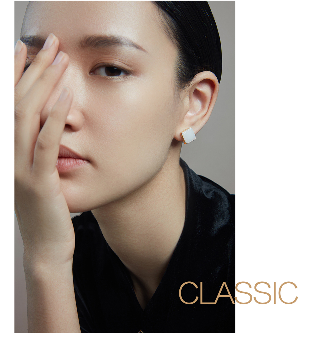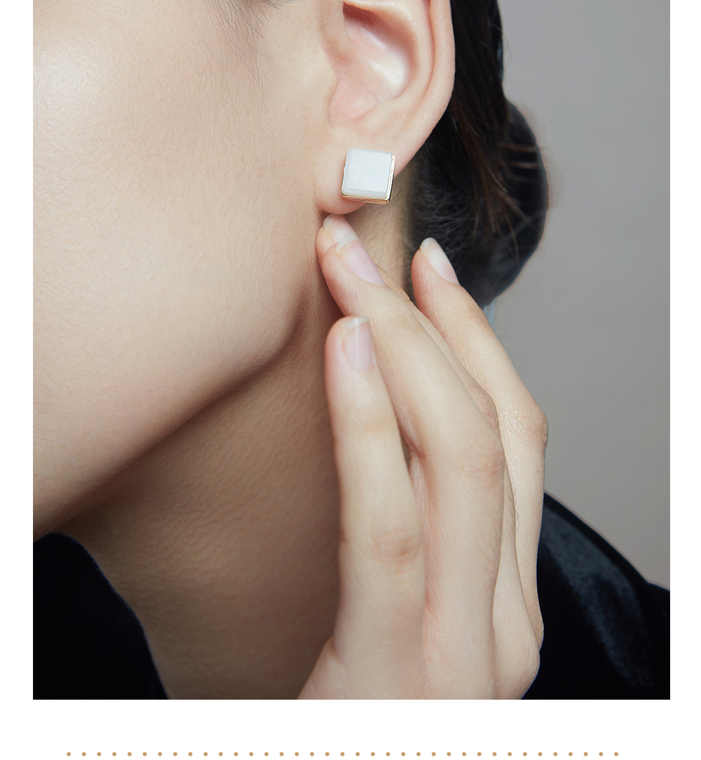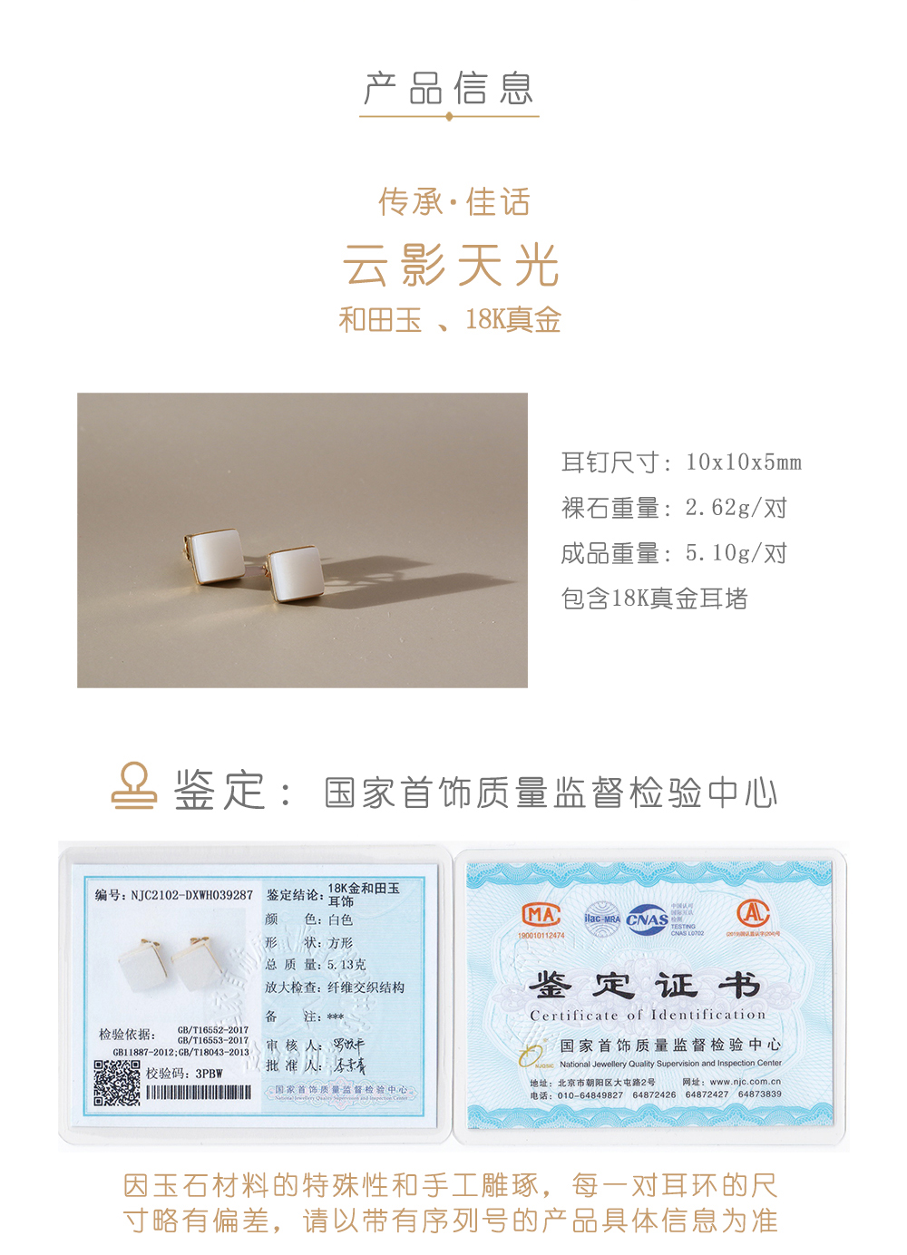Qinny|云影天光|18K金和田玉方钉日常百搭经典极简耳钉耳饰