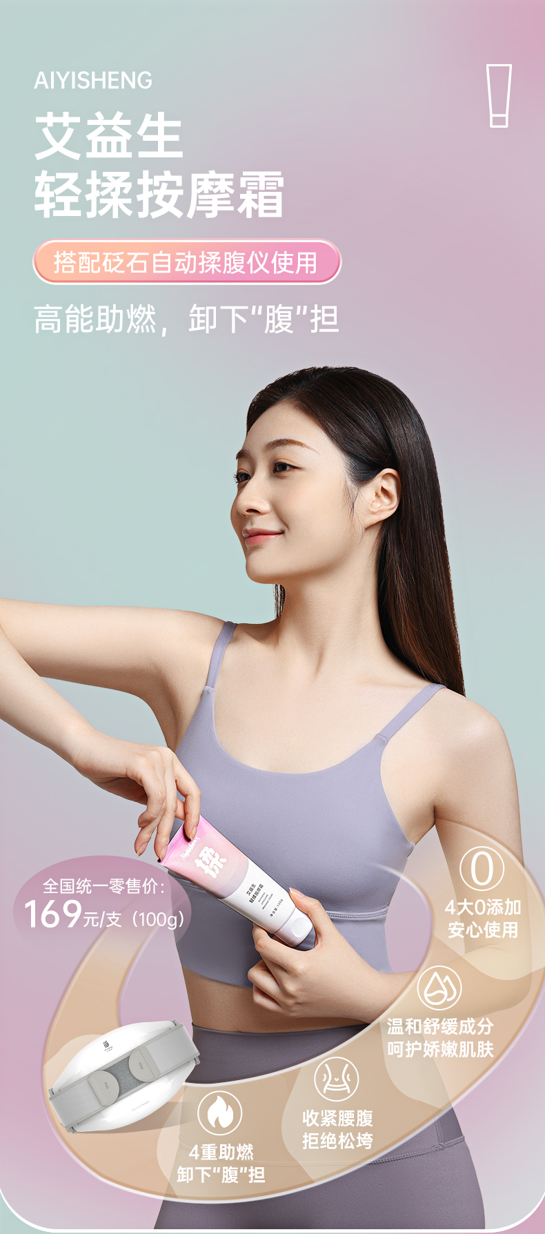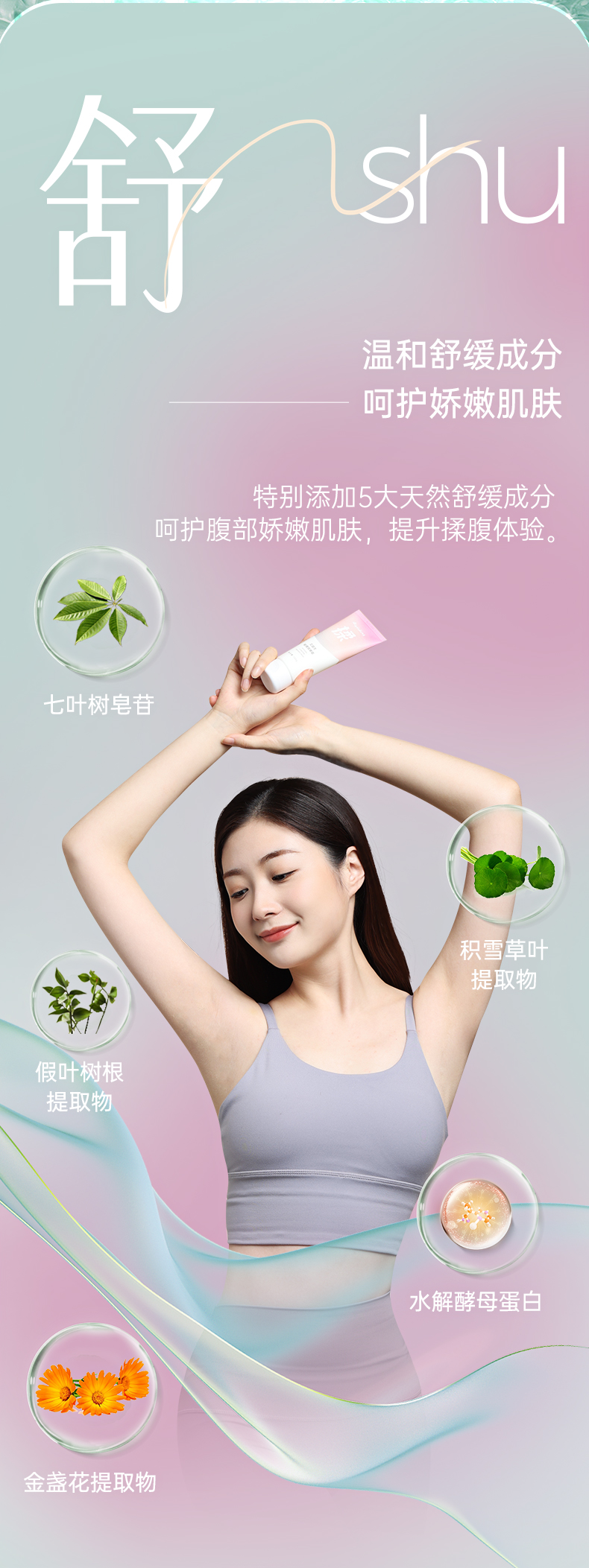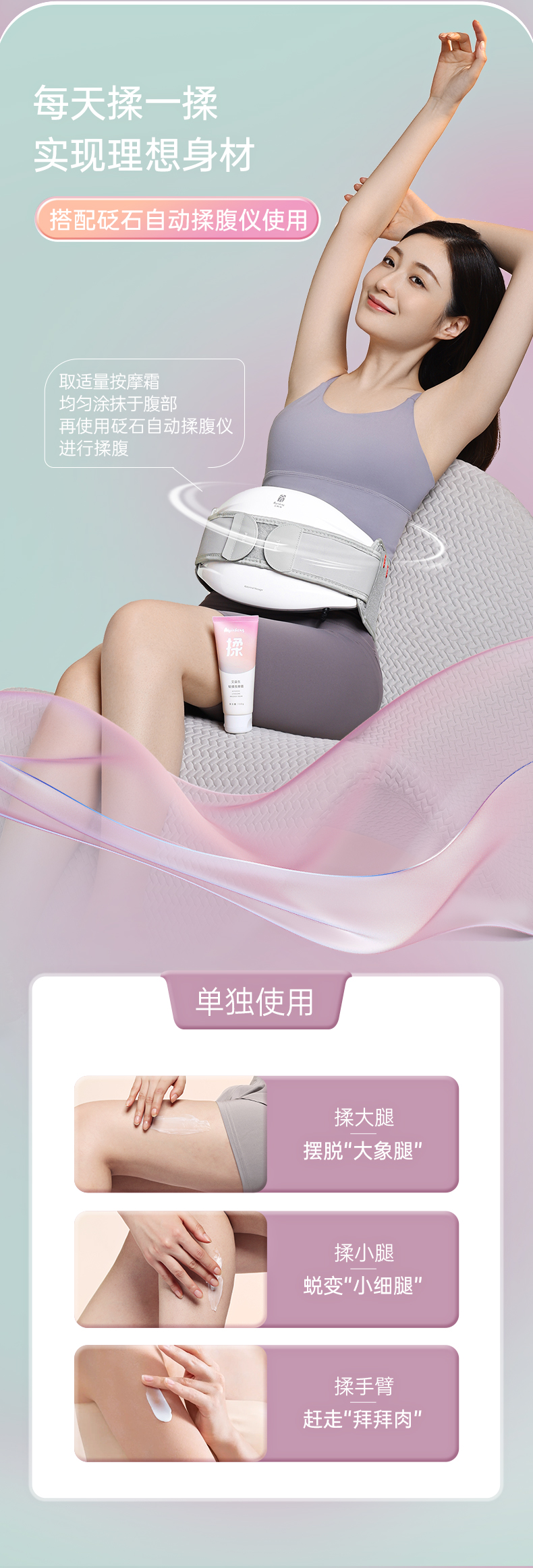 【轻柔按摩霜】搭配揉腹仪使用,帮助揉出S腰