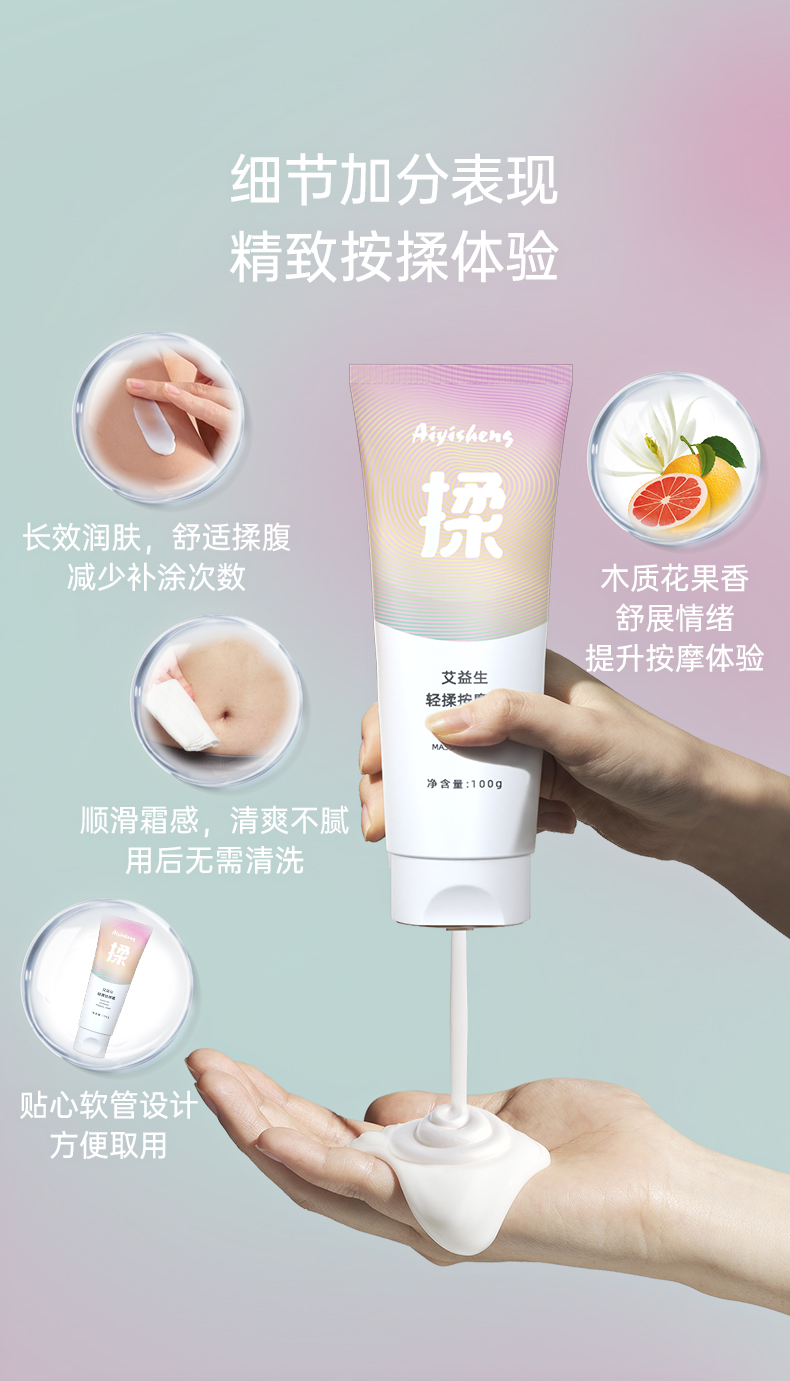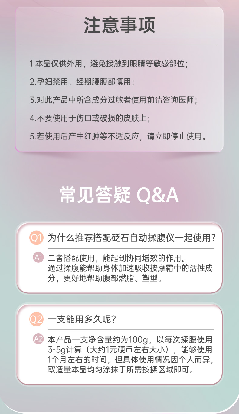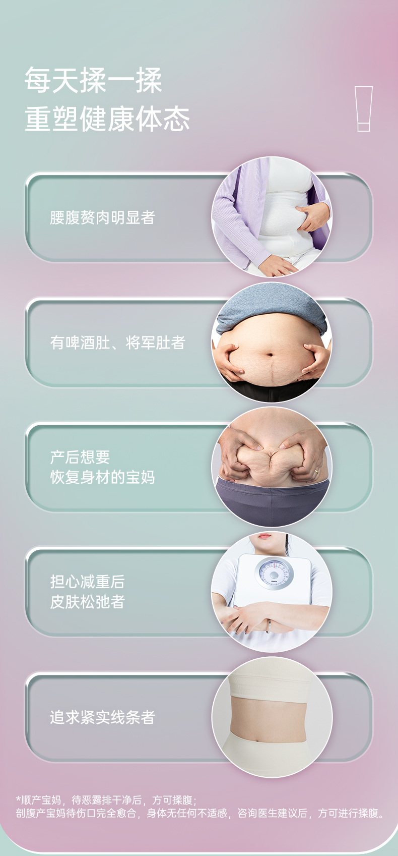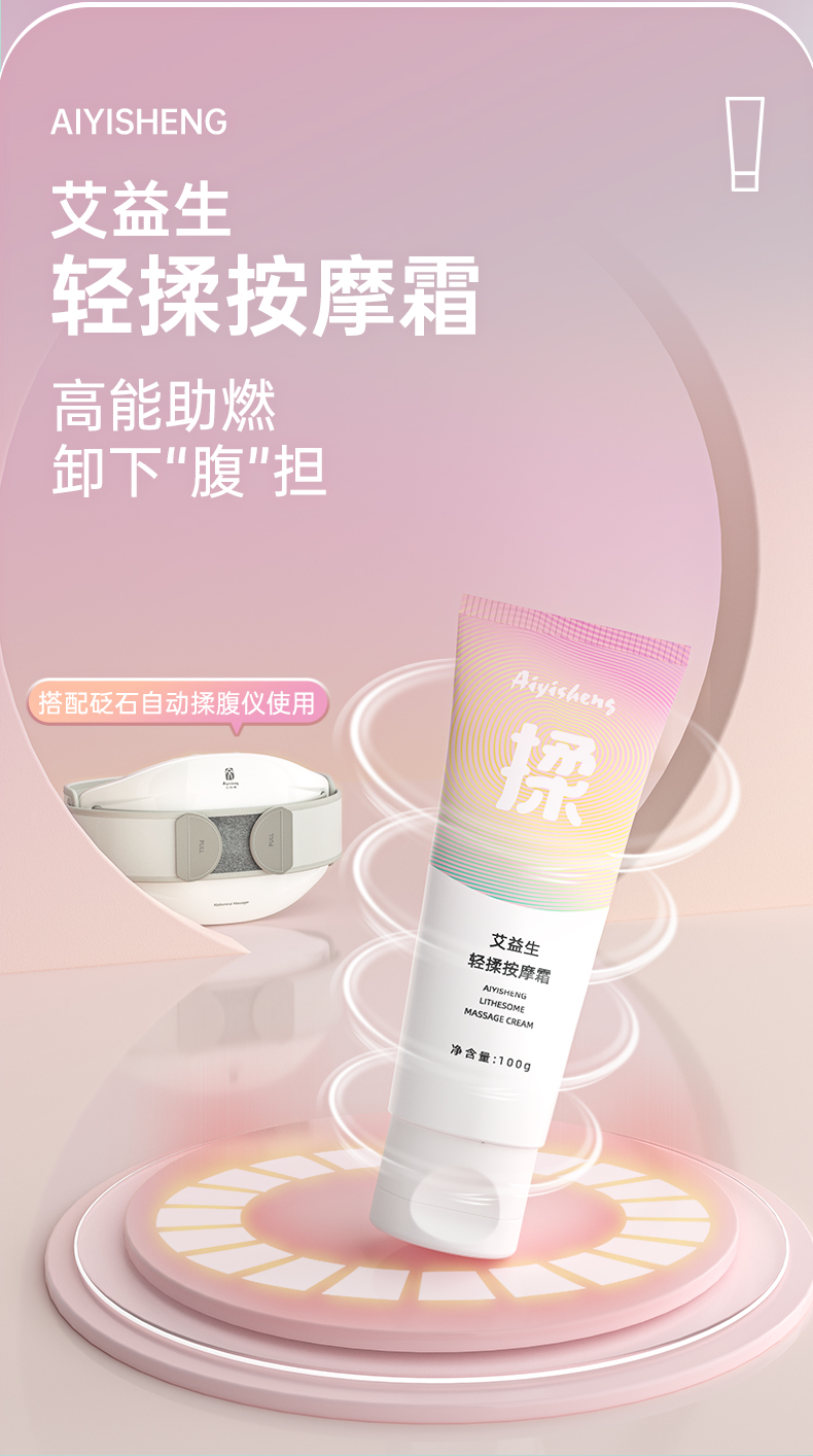 【轻柔按摩霜】搭配揉腹仪使用,帮助揉出S腰