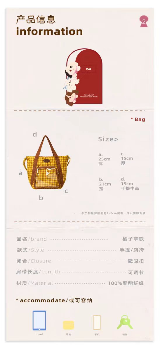 4楼Eubelle欧蓓 puui原创生活少女托特斜挎包二次元大容量 手提包/通勤包/单肩包 活动价:268元