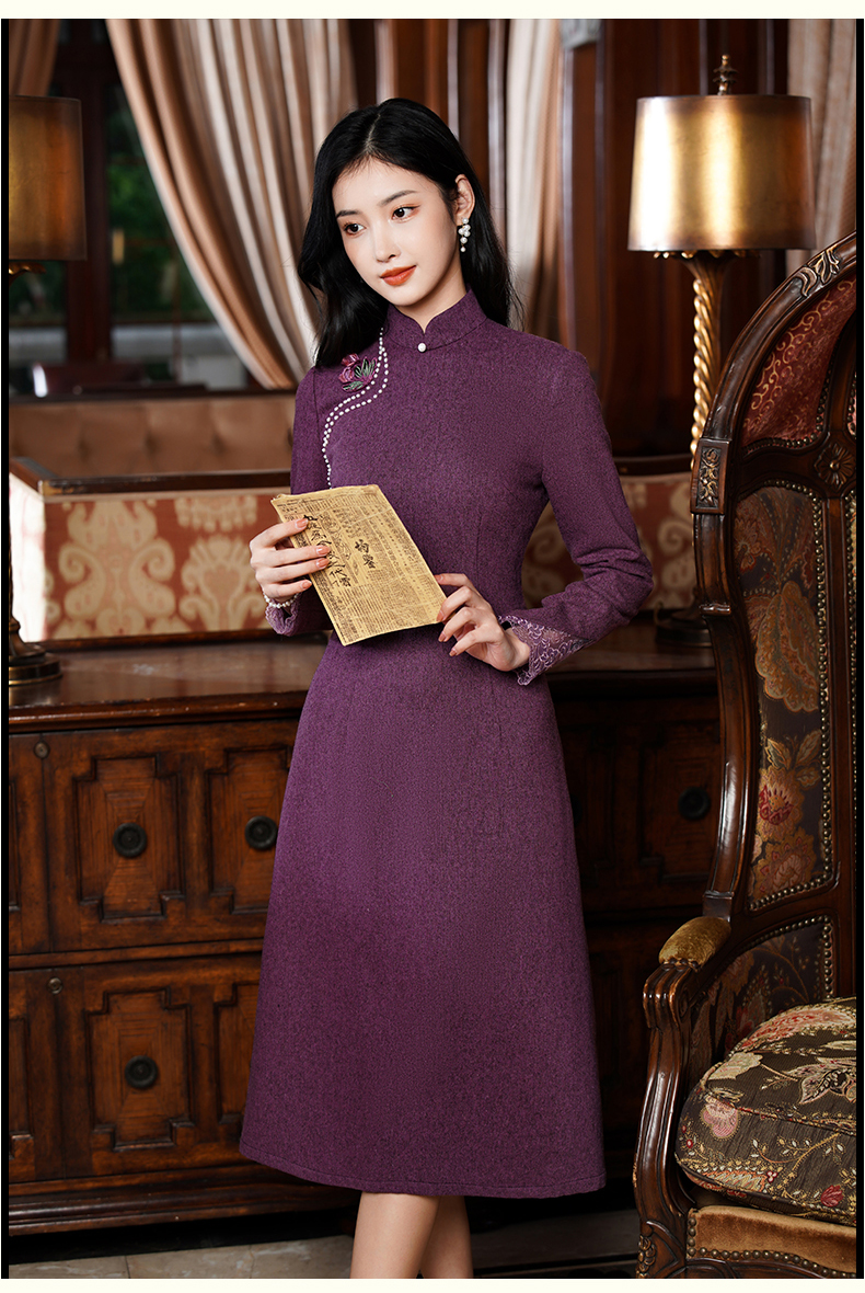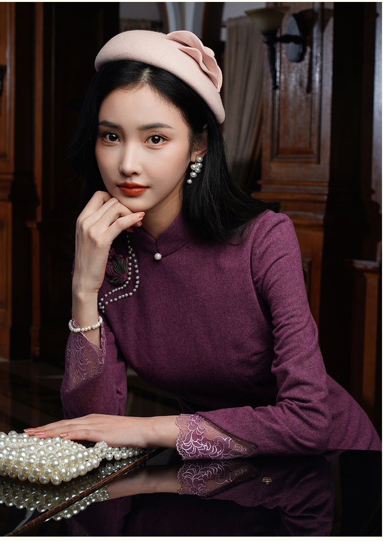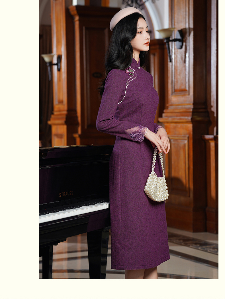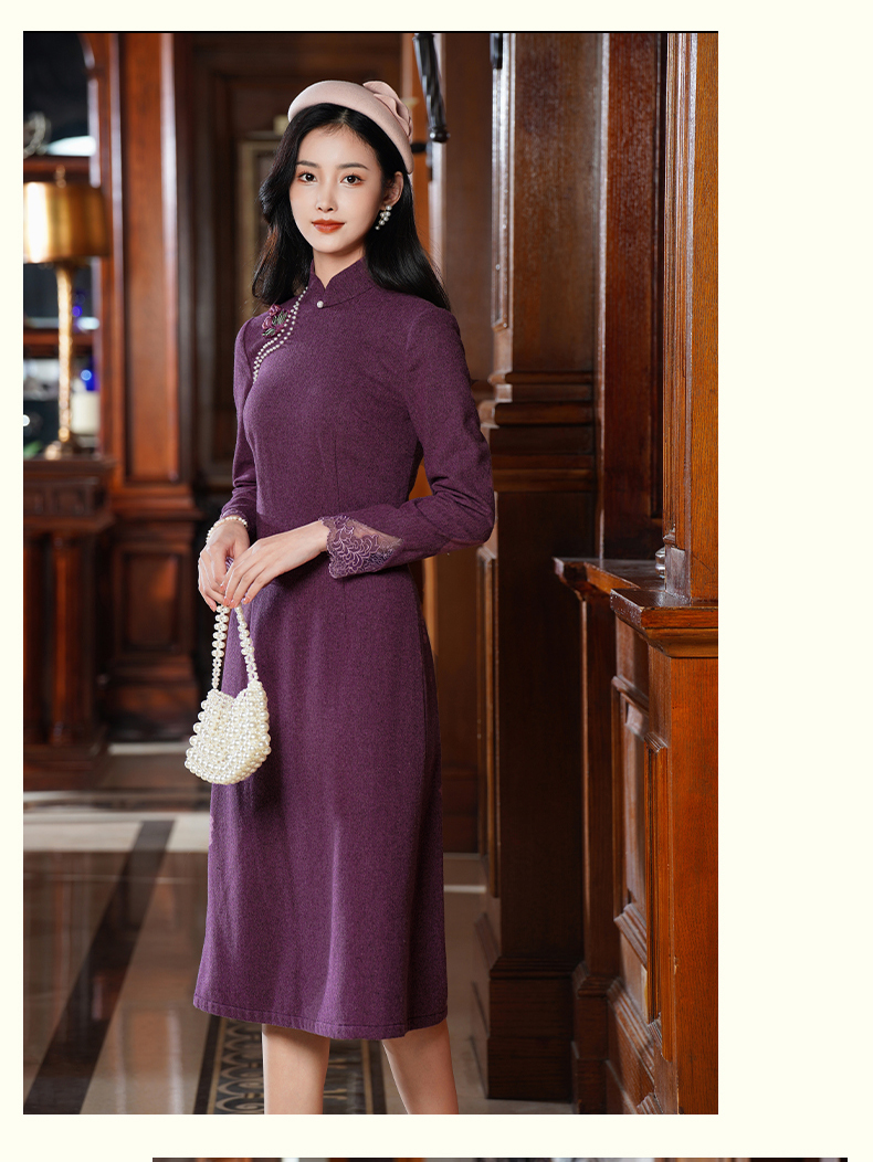 逸红颜郁馨2025冬款高端修身日常旗袍改良旗袍针织呢