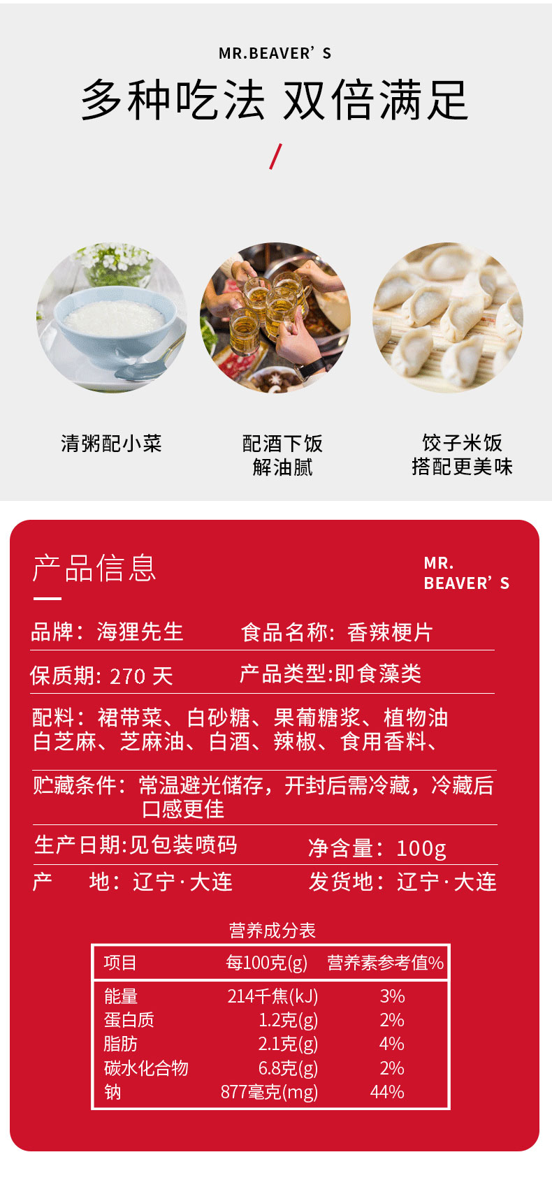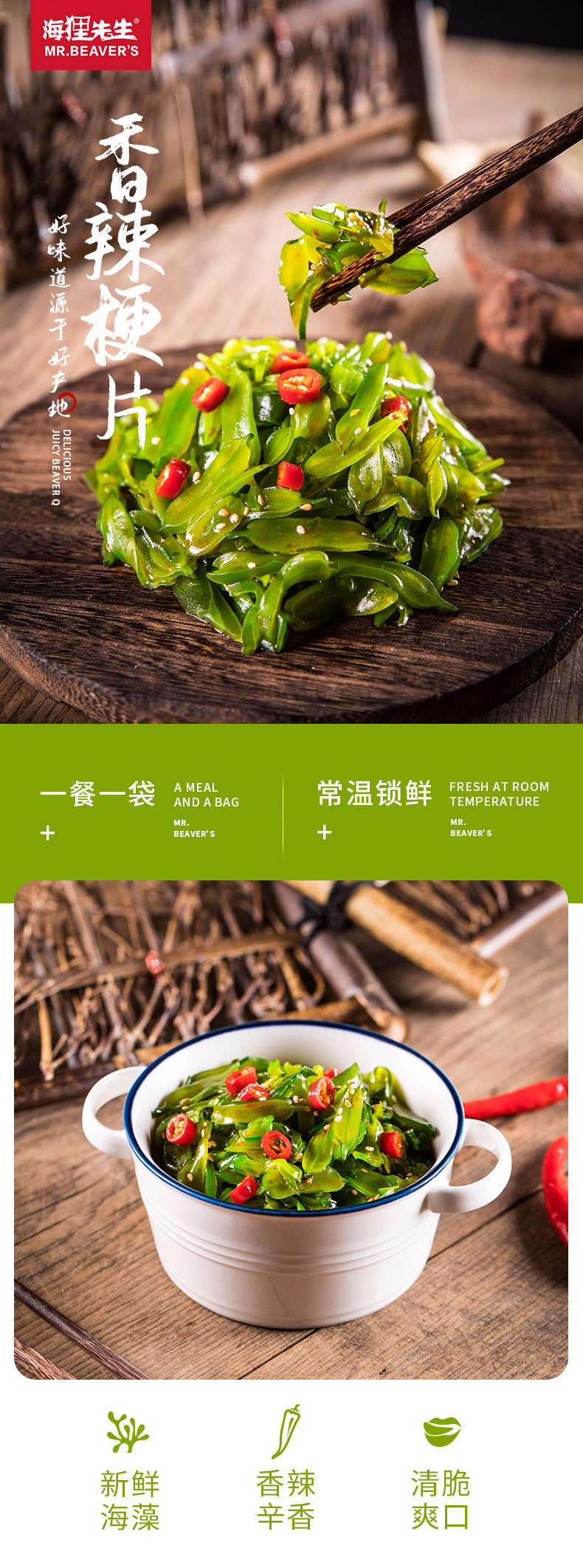 海狸先生香辣梗片100g*10袋海藻下饭神器一餐一袋不浪费