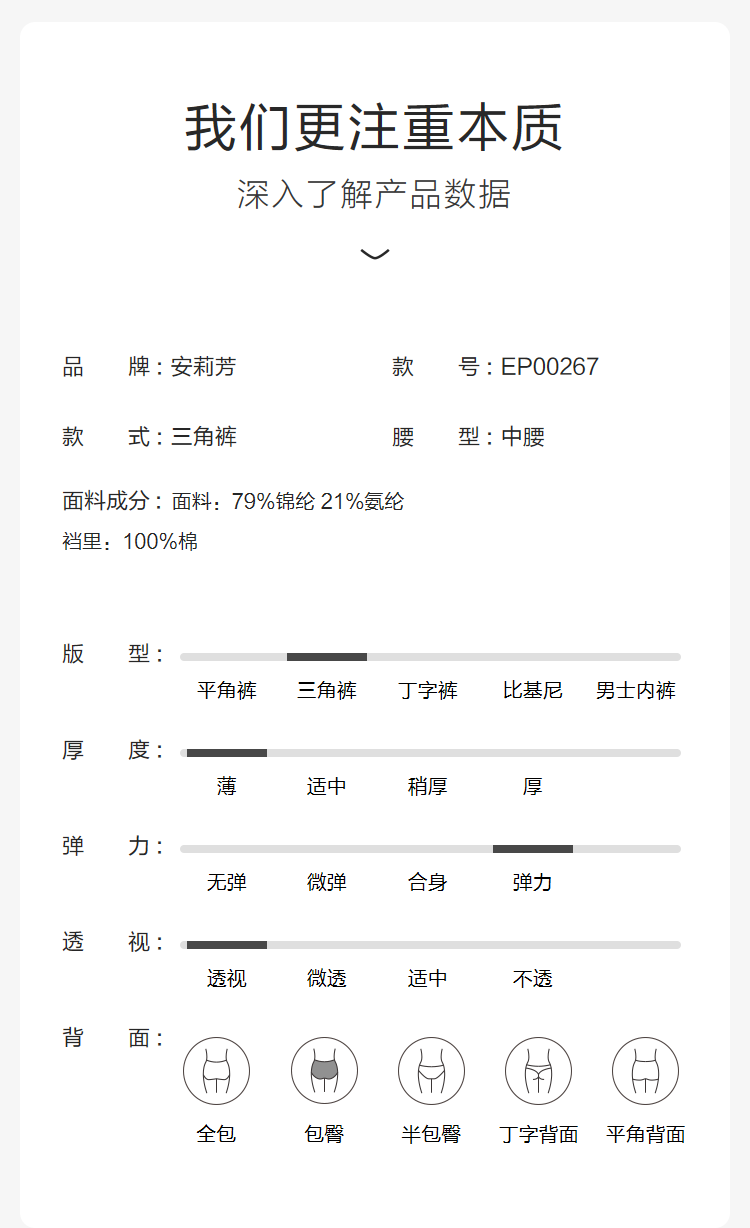 【3F】安莉芳花卉蕾丝性感中腰三角裤薄款弹力女士内裤EP00267