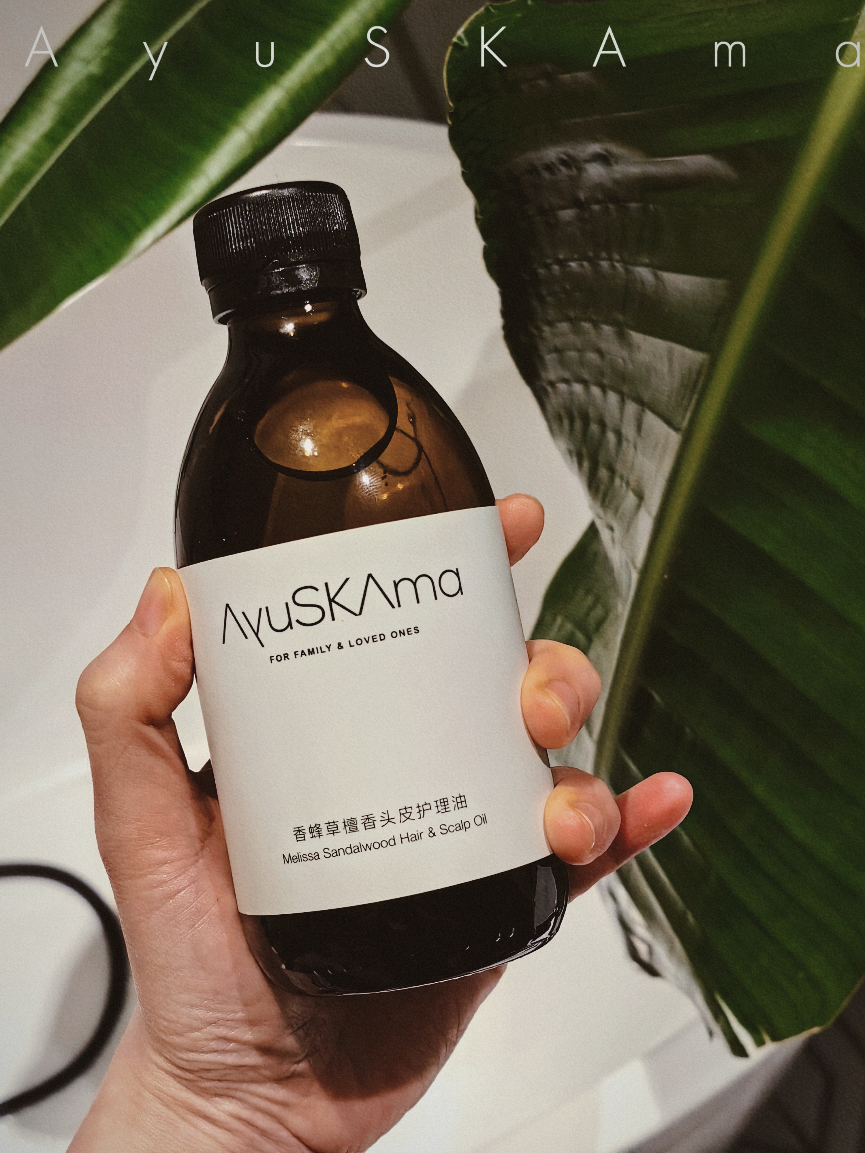 大家可以按自己的情况选椰子油或温润油,严重情况下,特别是有生发需求、头痛失眠困扰以及日常压力较大,就用香蜂草檀香按摩油。精露的选择上,生发用迷迭香,痒屑用檀香,油痘用天竺葵,其他用玫瑰,没大问题的也可加水干洗。洗发水一定要用AyuSkAma的,不需要护发素,但必须把油都冲干净,洗两遍,才会蓬松舒爽。一般是一周一次,对毛囊是深层清洁,对防脱生发帮助也蛮大的,最好能一直坚持。