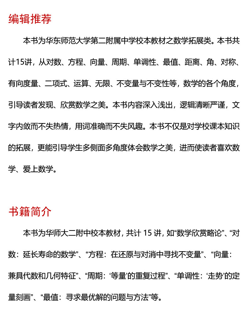 高中数学欣赏十五讲 华东师范大学第二附属中学 校本教材