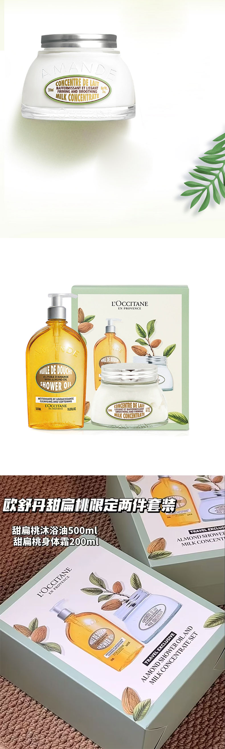 【欧舒丹杏仁甜扁桃两件套盒 】沐浴油500ml+身体乳罐装200ml 一般贸易