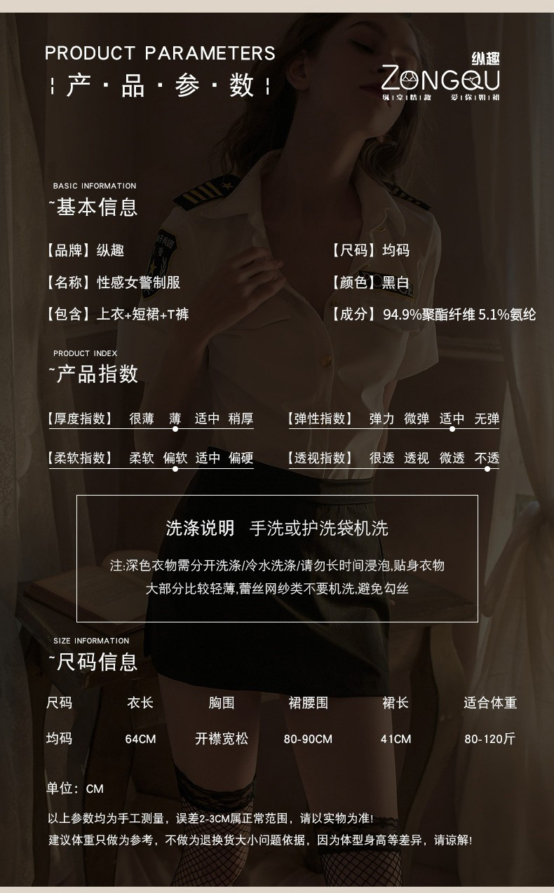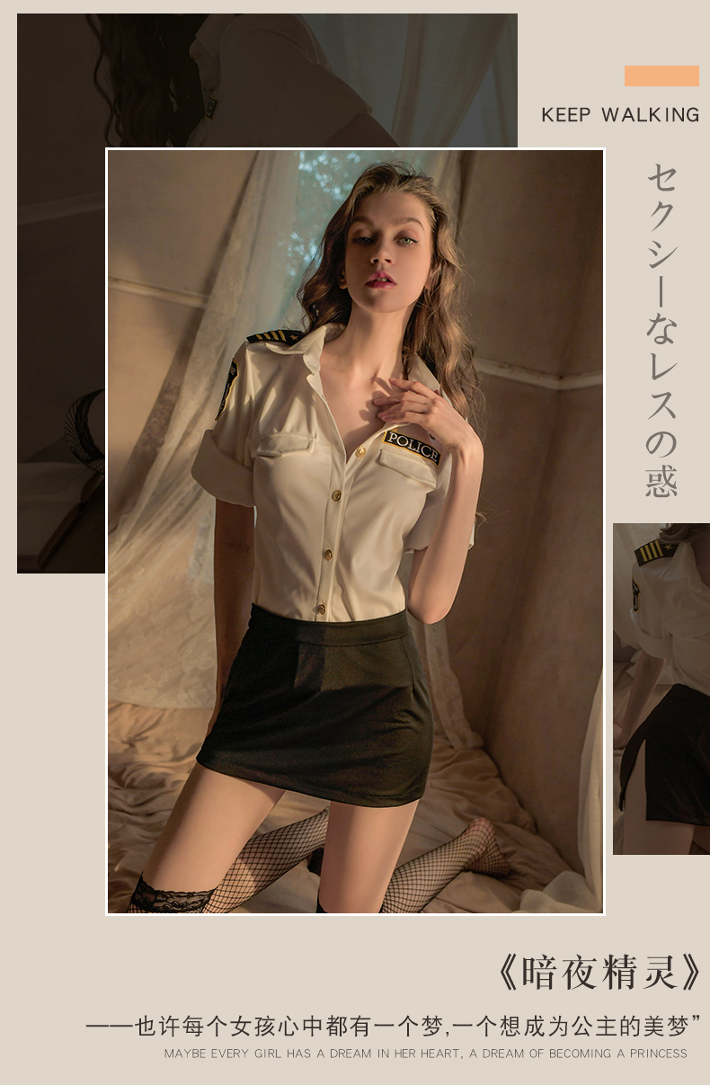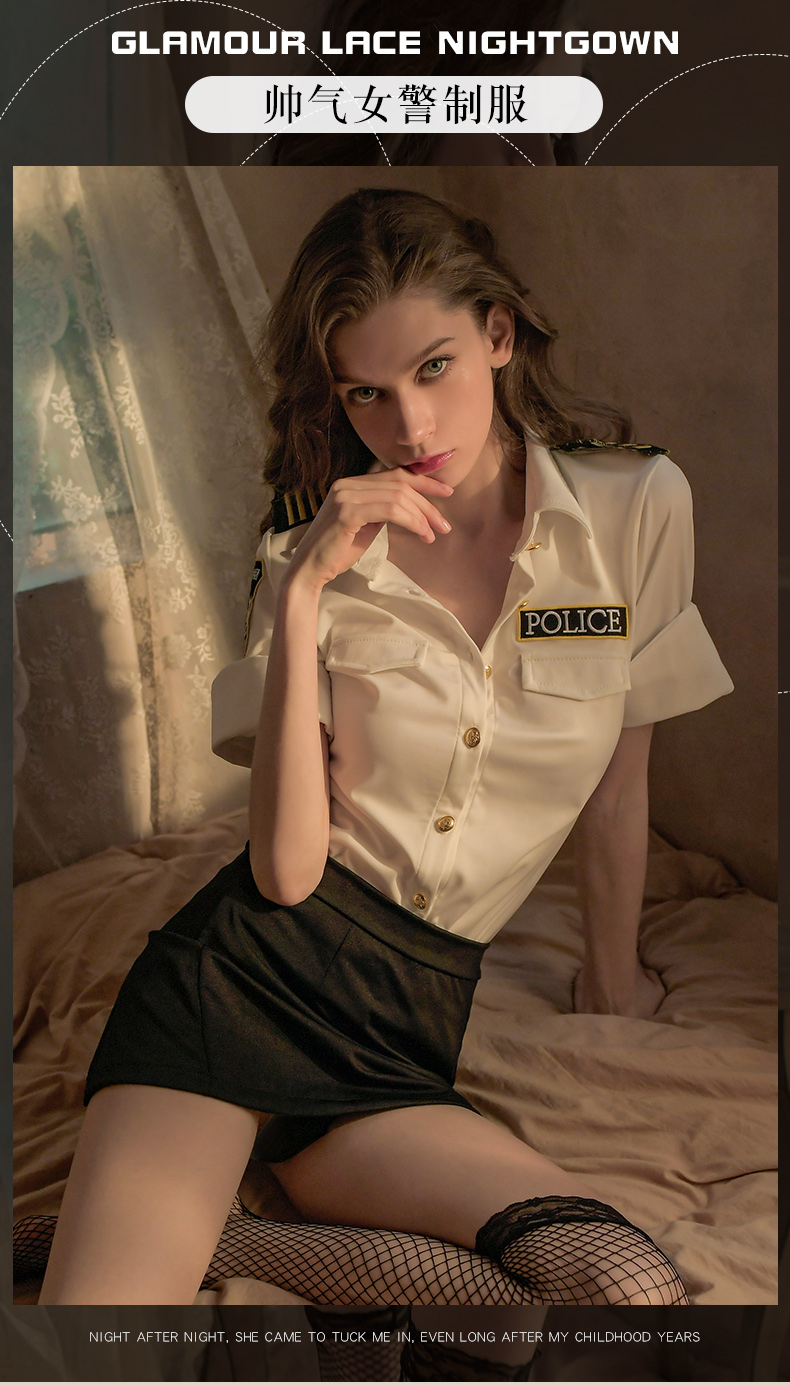 【性感睡裙】麻辣女警官·帅气女警制服 性感包臀短裙 上衣+短裙+T裤 纯欲诱惑性感甜美情趣内衣睡衣6331