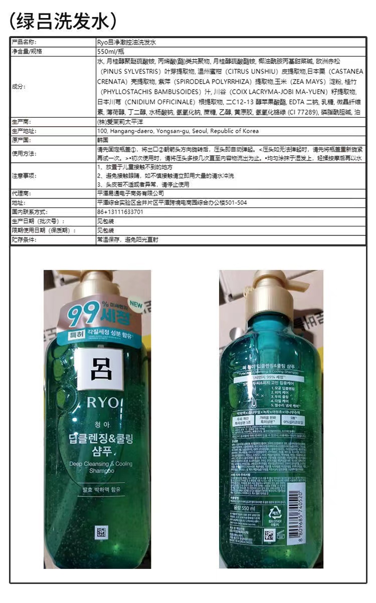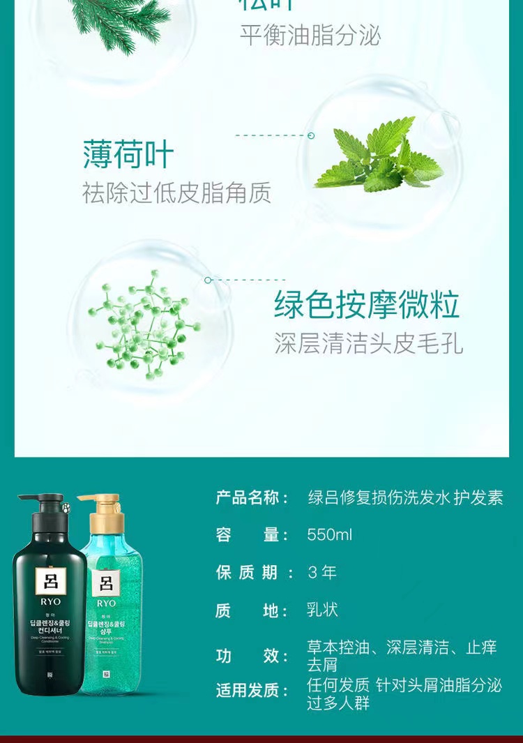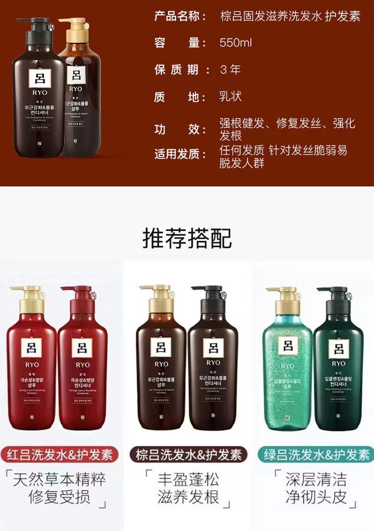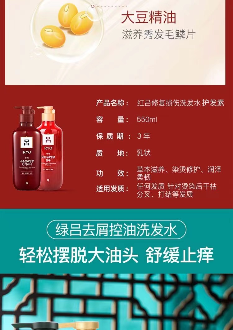 【保税仓】韩国Ryo吕 红吕洗发水550ml 染烫修复损伤