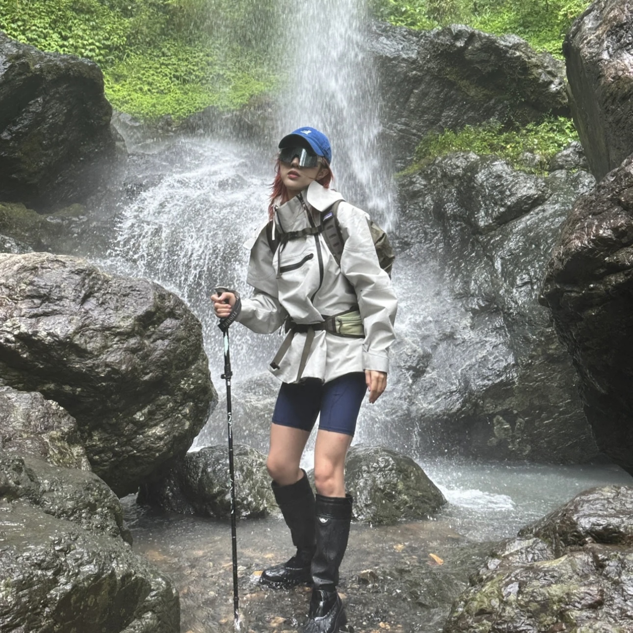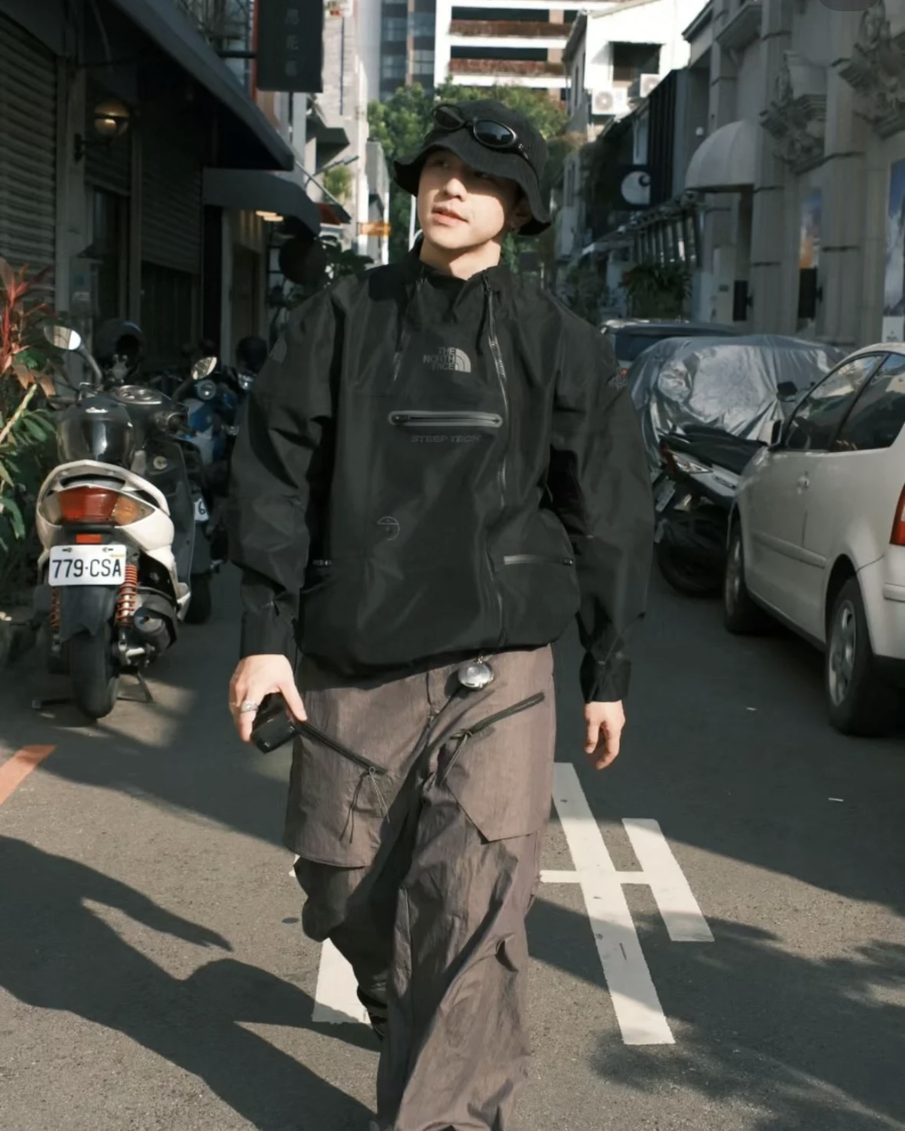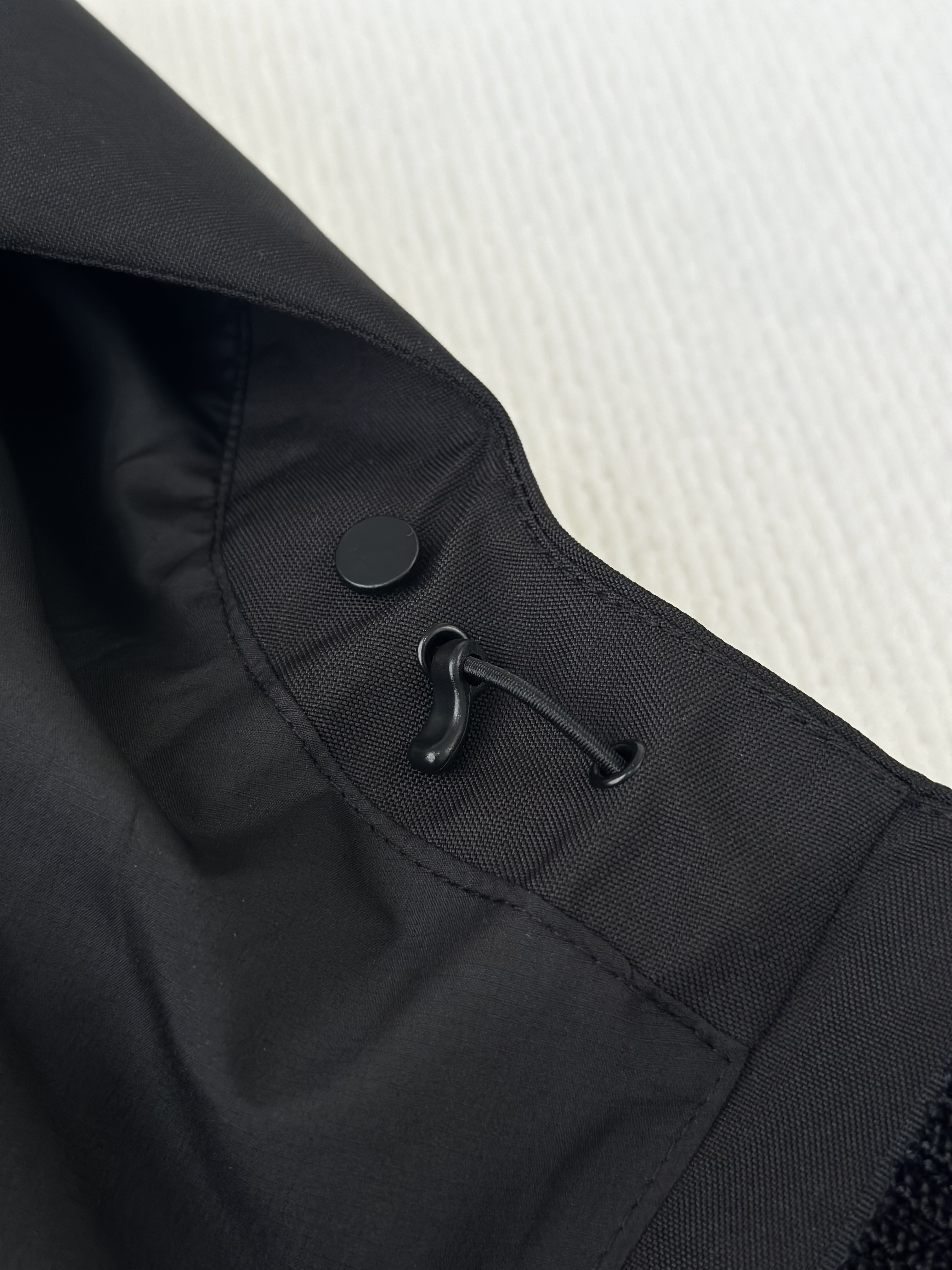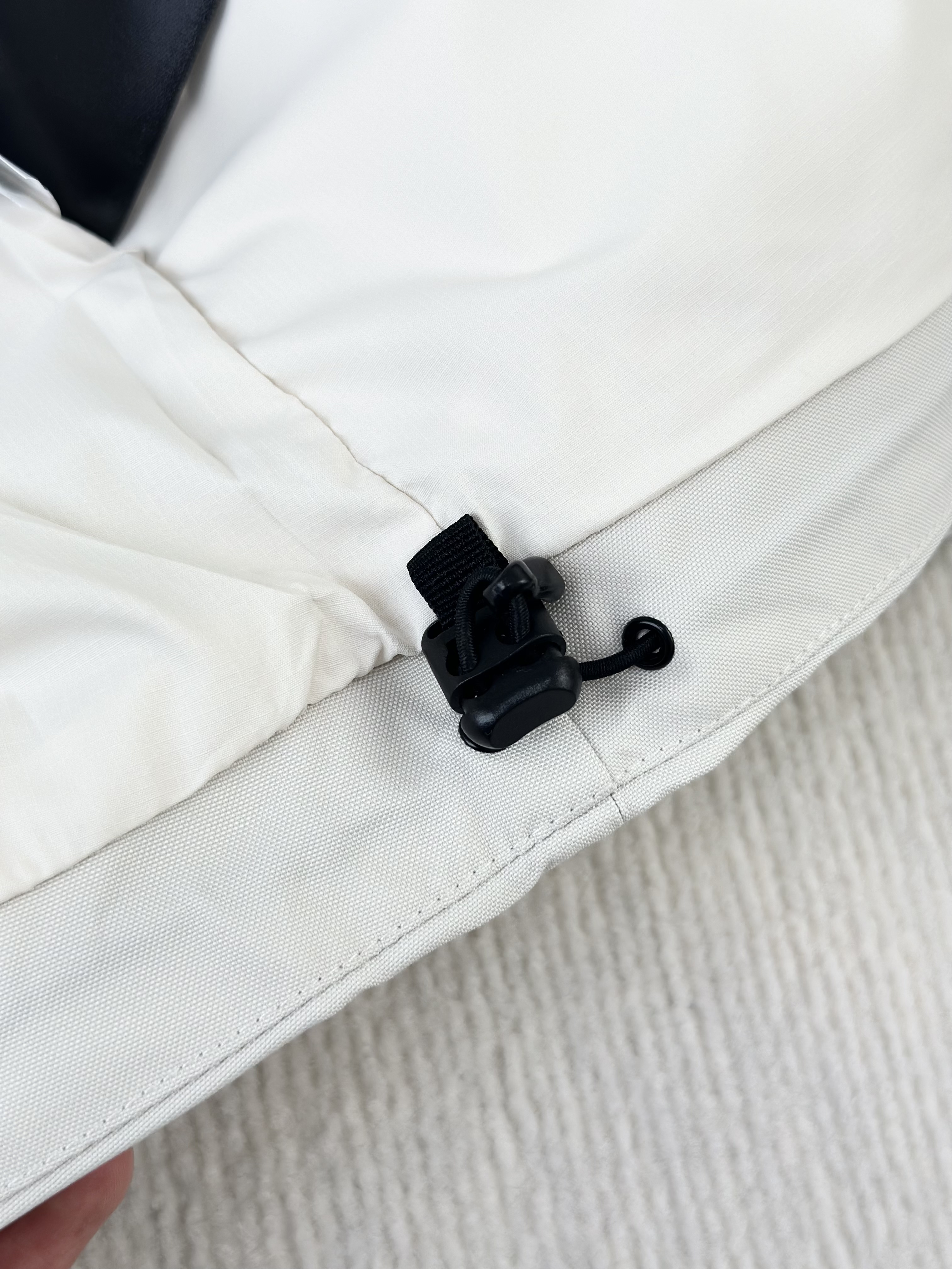 3D热转印的STEEP TECH的品牌标识,下摆处内置抽绳拉扣可调节;