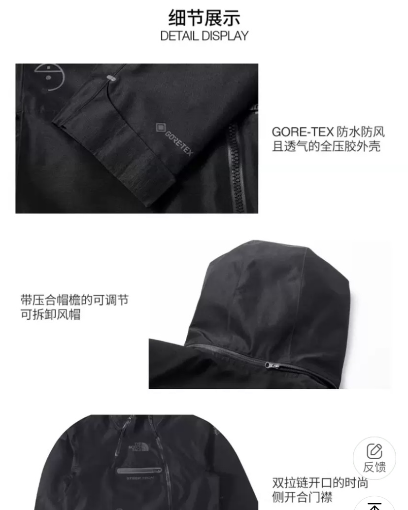 毒家,官网同步在售5000+ 北面ue系列男女同款GORETEX STEEP TECH硬壳冲锋衣防水透气风帽可拆卸~斜开襟