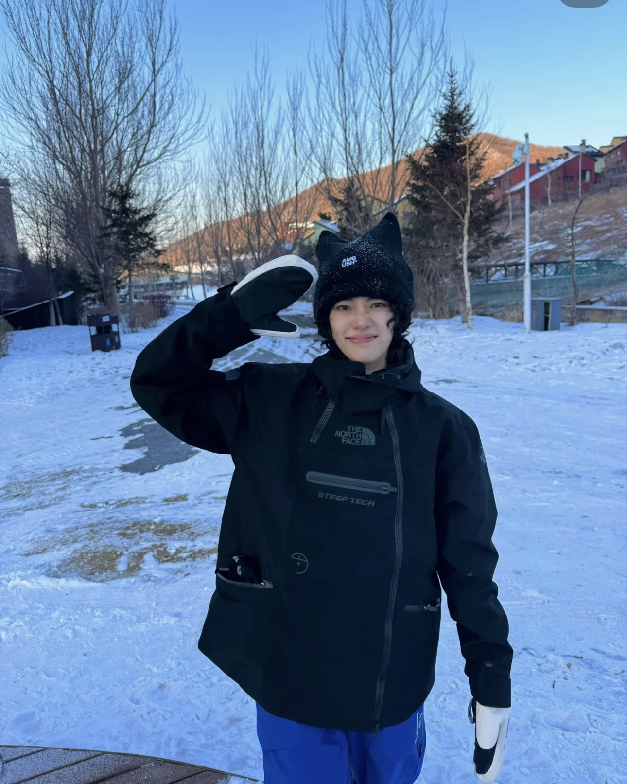 印花图案卫衣,以抽象的雪山图案,营造採索氛围。