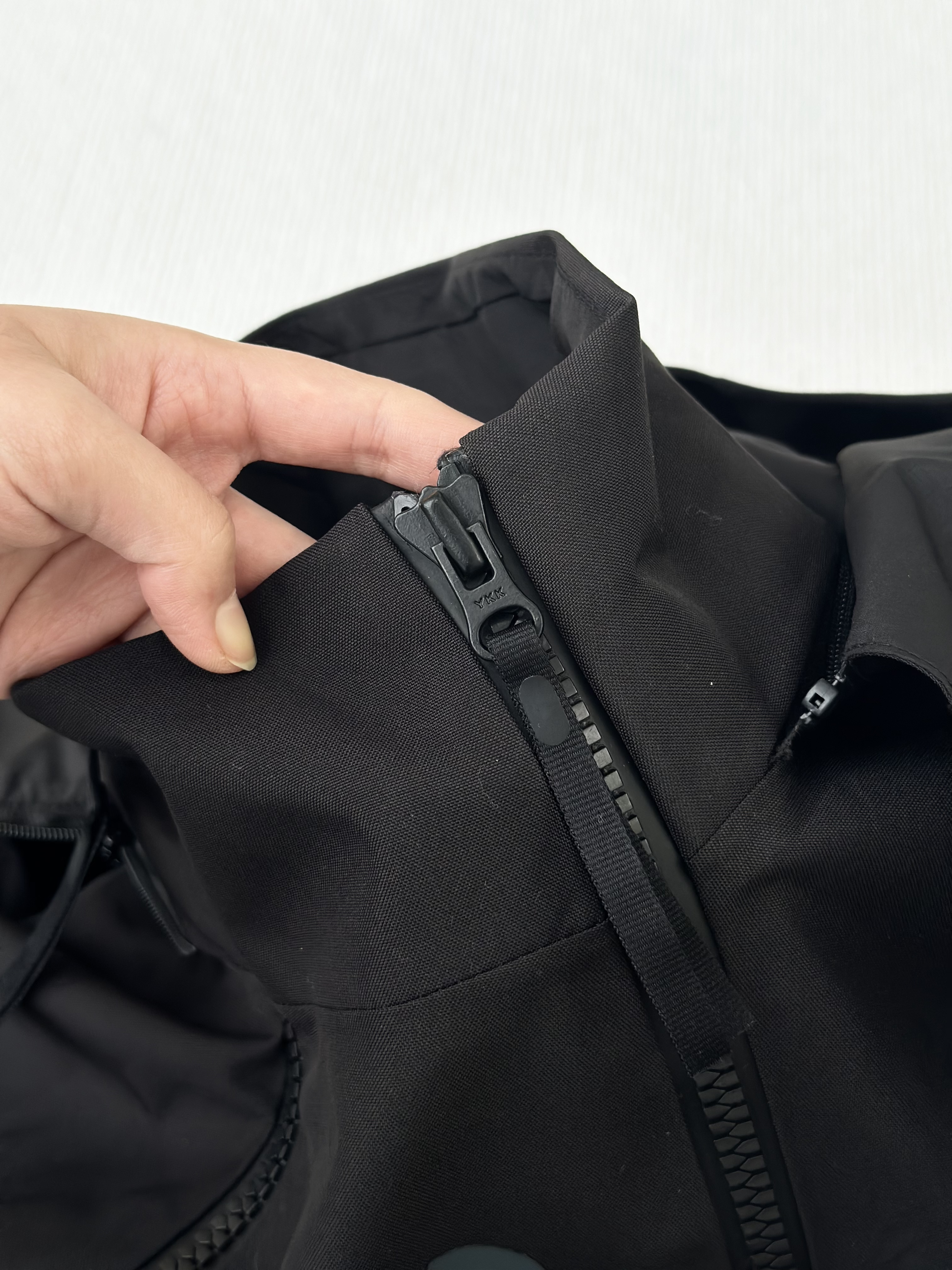 裁接缝设计,口袋拉链pu压合拉链严密防水实用性更强!