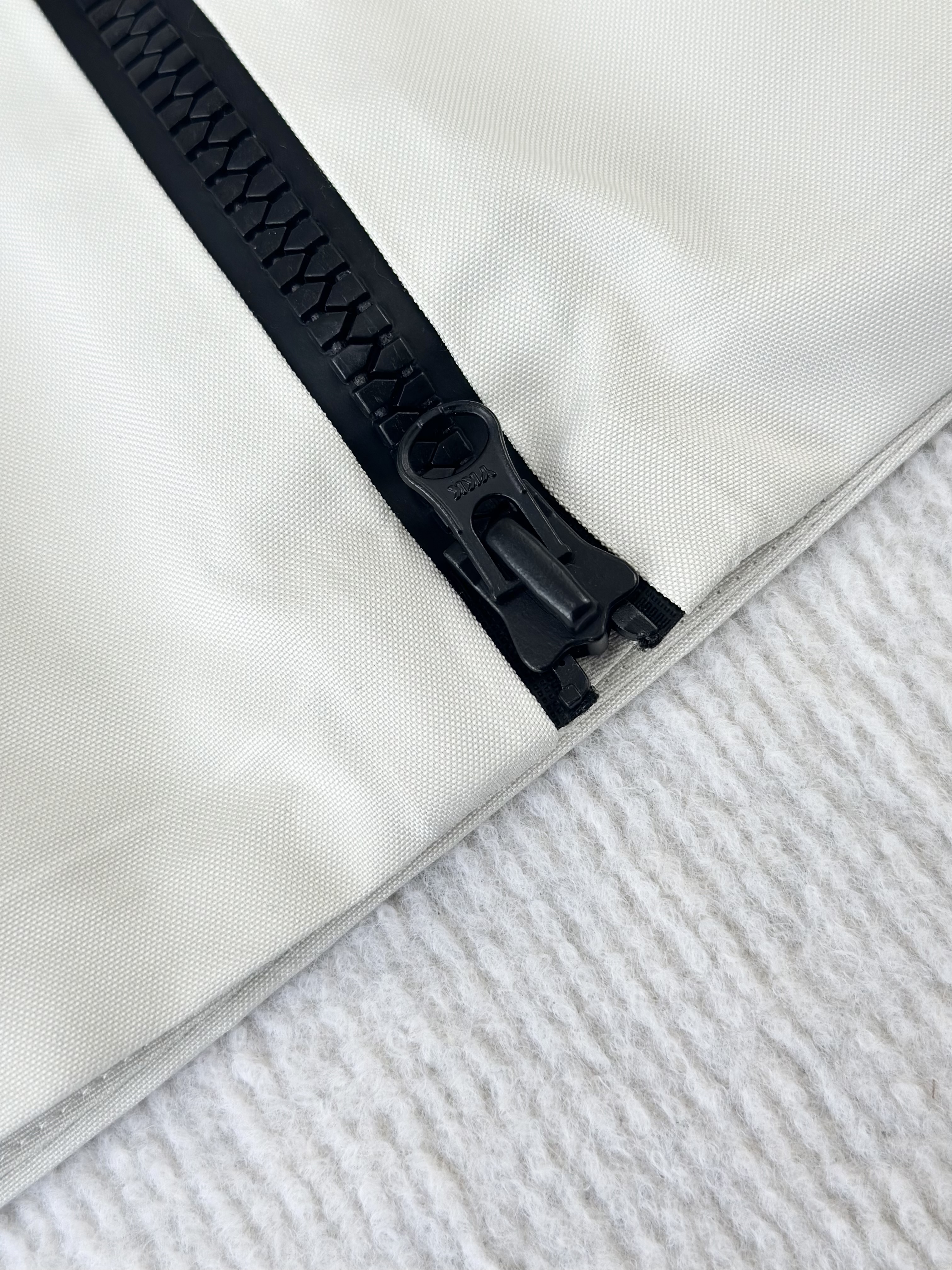 双拉链开口的时尚侧开门襟,肩部运动灵活舒适的立体剪