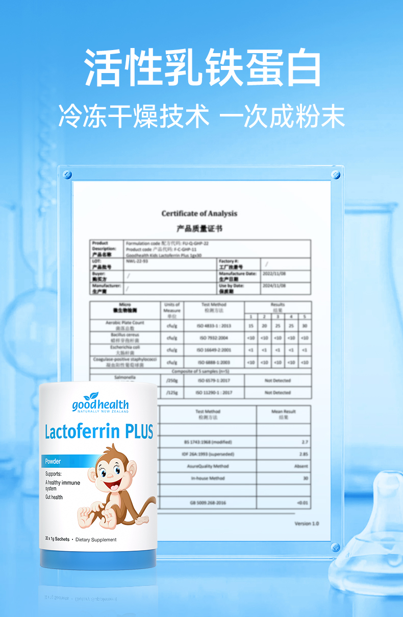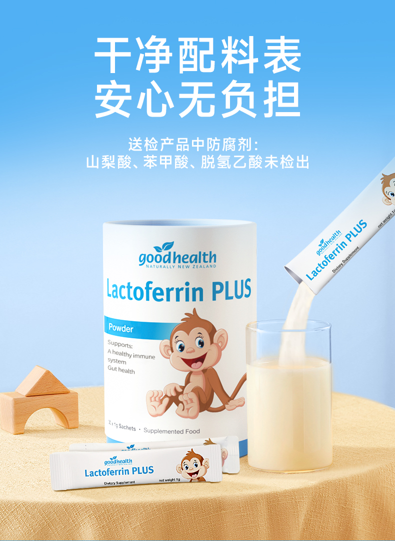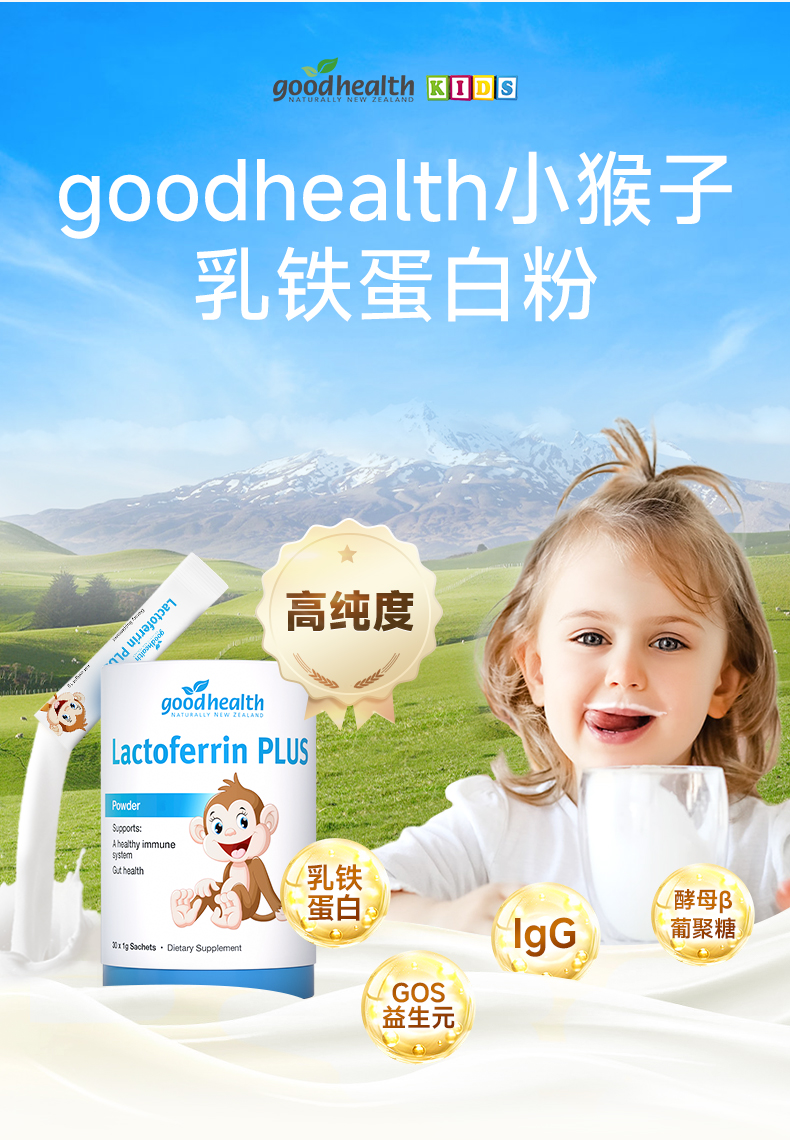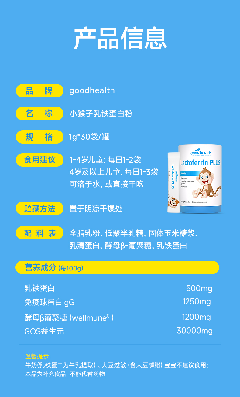 goodhealth小猴子乳铁蛋白1g*30支/罐儿童免疫调节蛋白粉