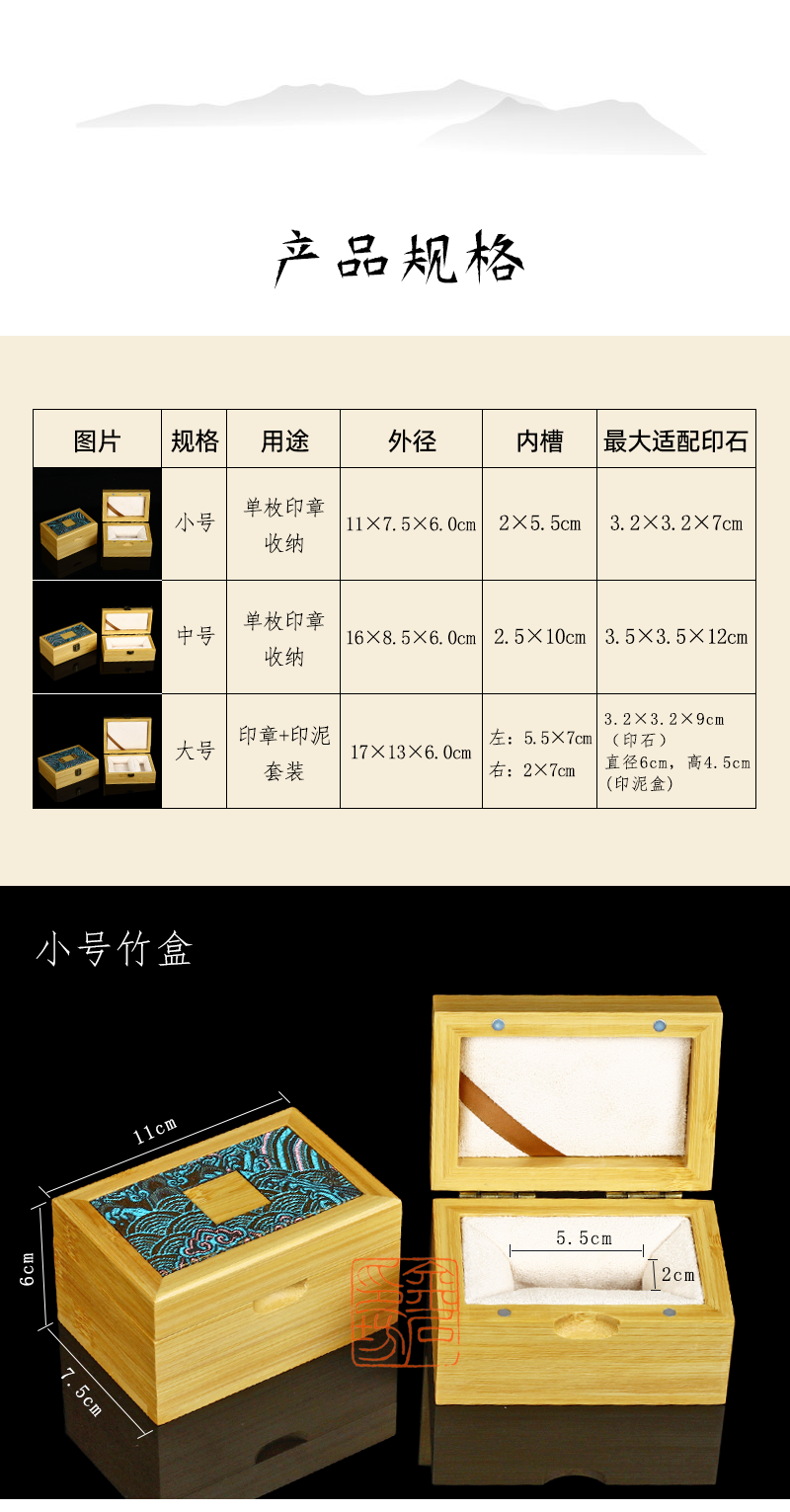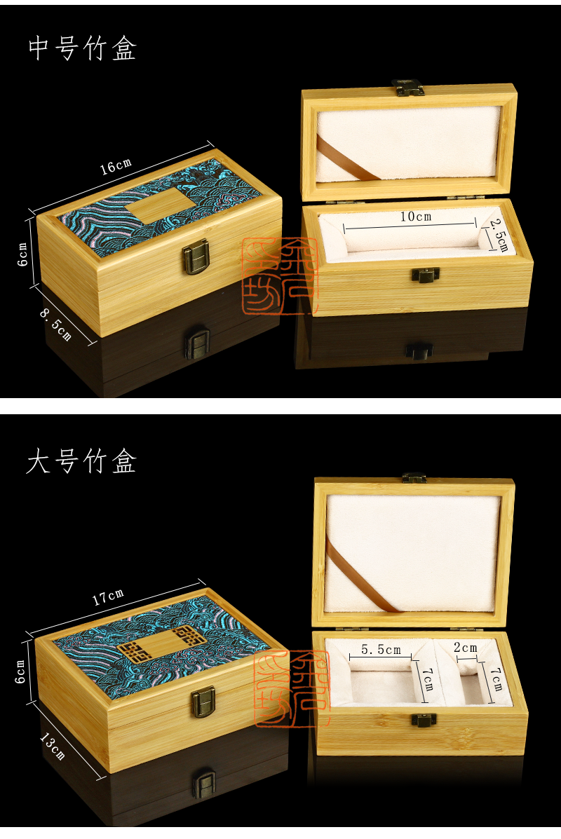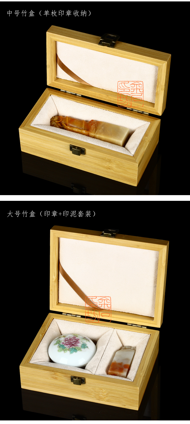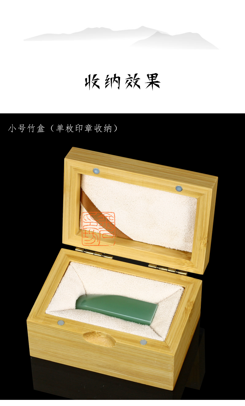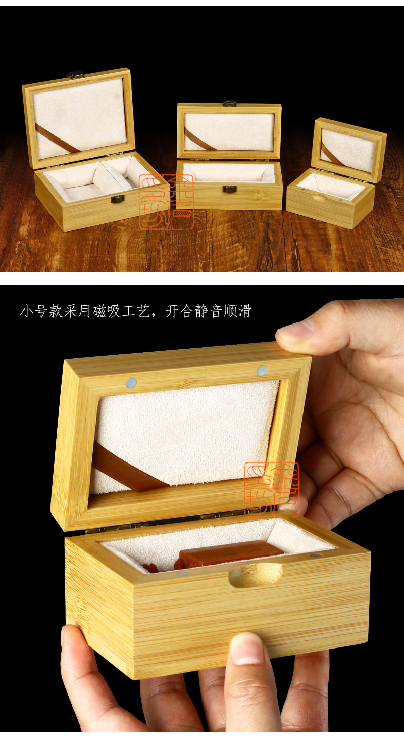 [金石印坊]高档加厚楠竹印章盒文房篆刻印石收纳盒中式锦布印章印石印泥收纳礼盒