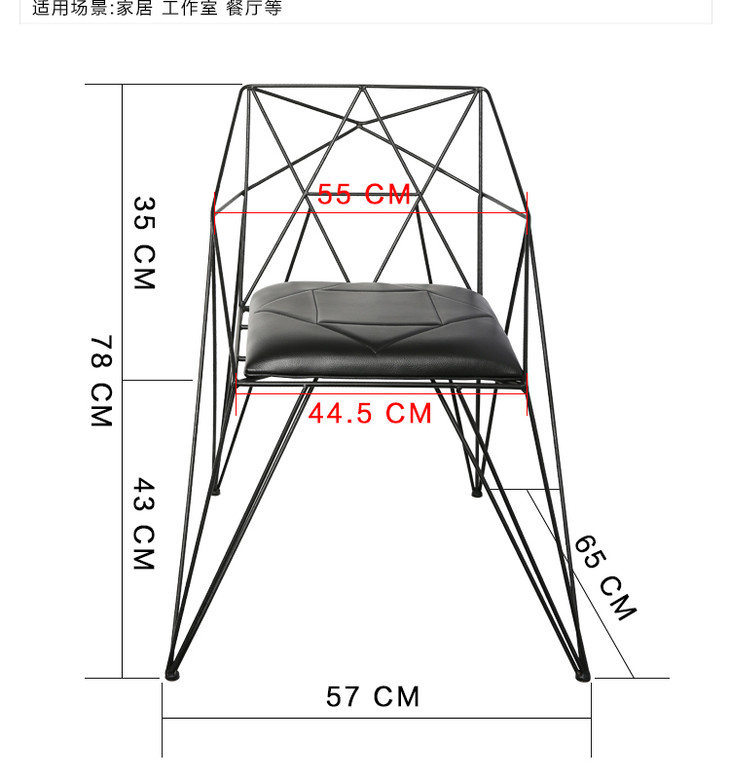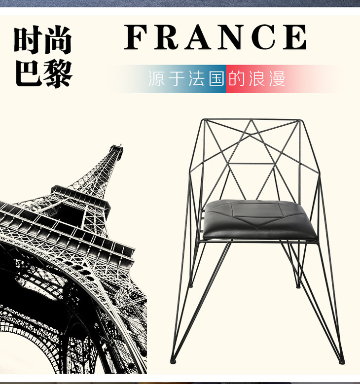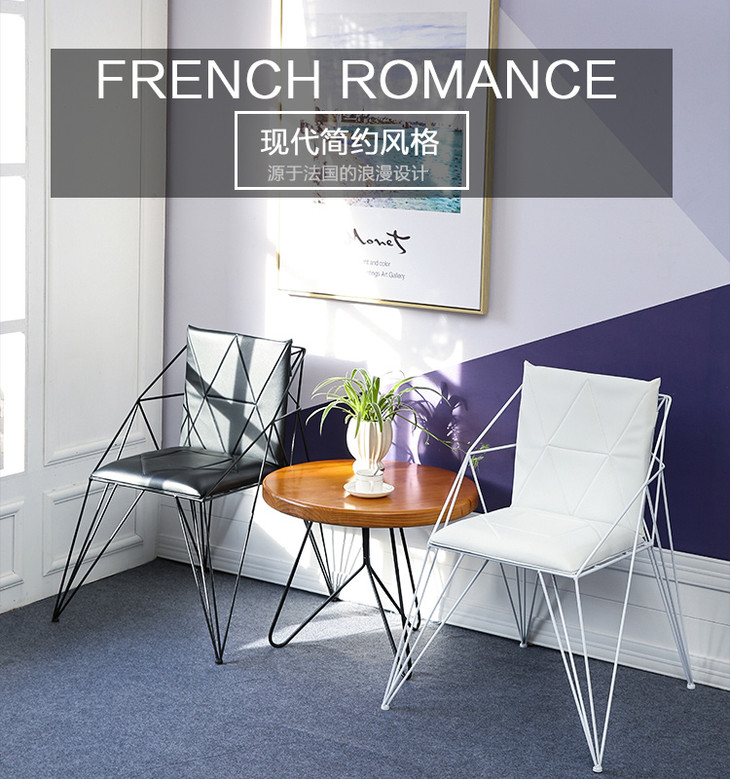 【家具】现代简约办公椅浪漫设计铁艺座椅时尚钢筋椅子休闲工作室椅子